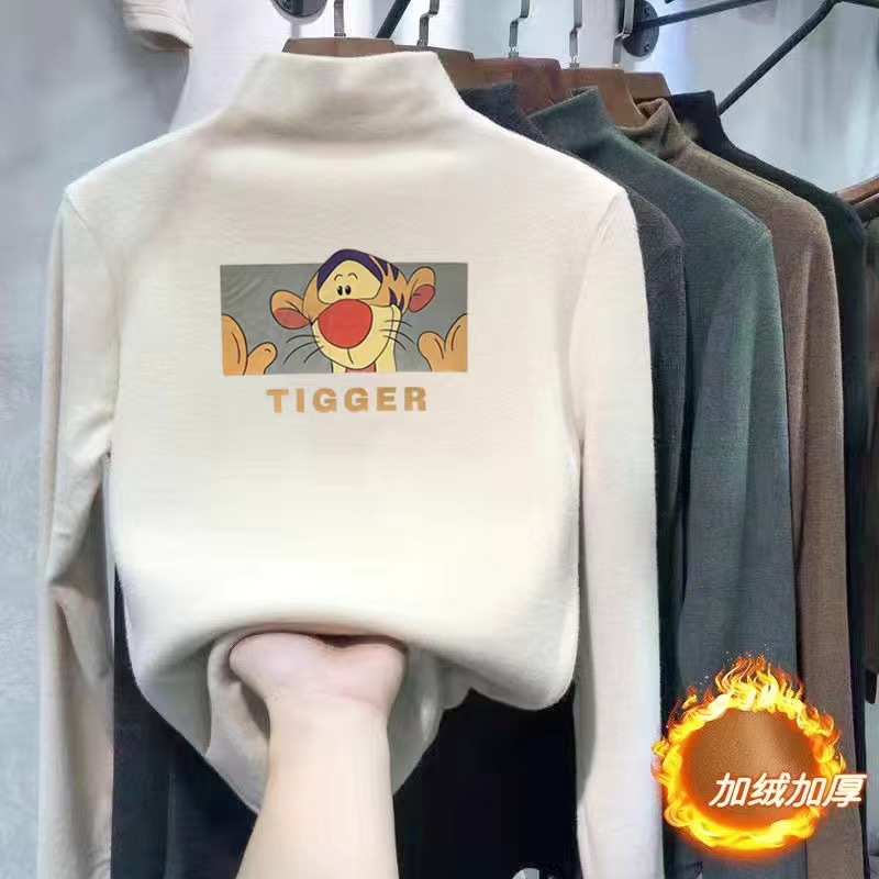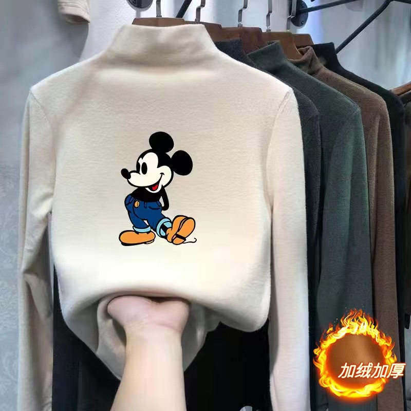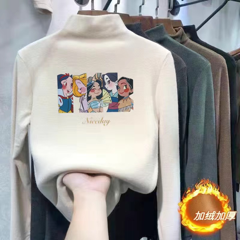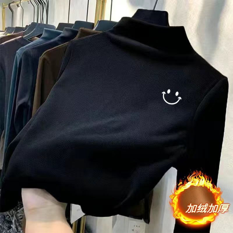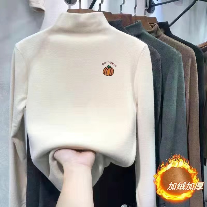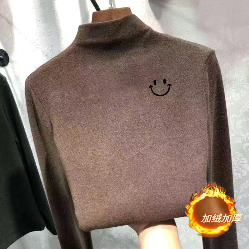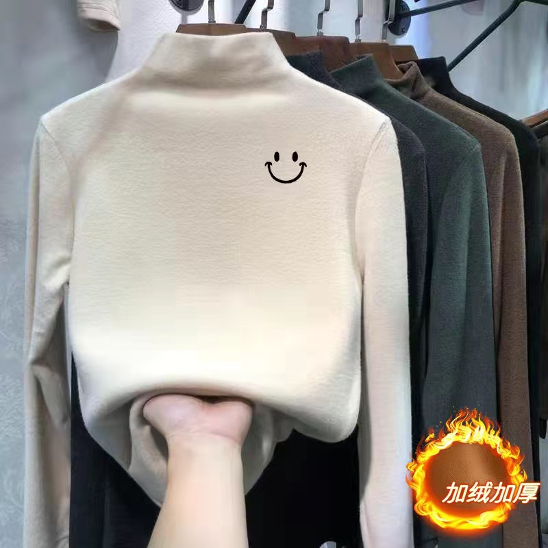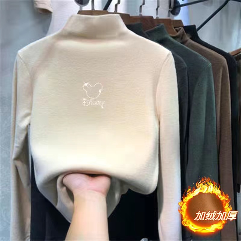여아 베이스 셔츠 새로운 가을과 겨울 두꺼운 원피스 캐시미어 긴팔 기모 두꺼운 반 높이 칼라 스타일리스트 탑스토어 가기