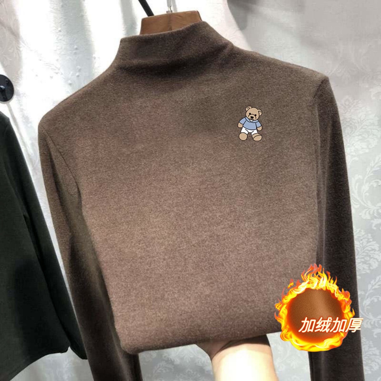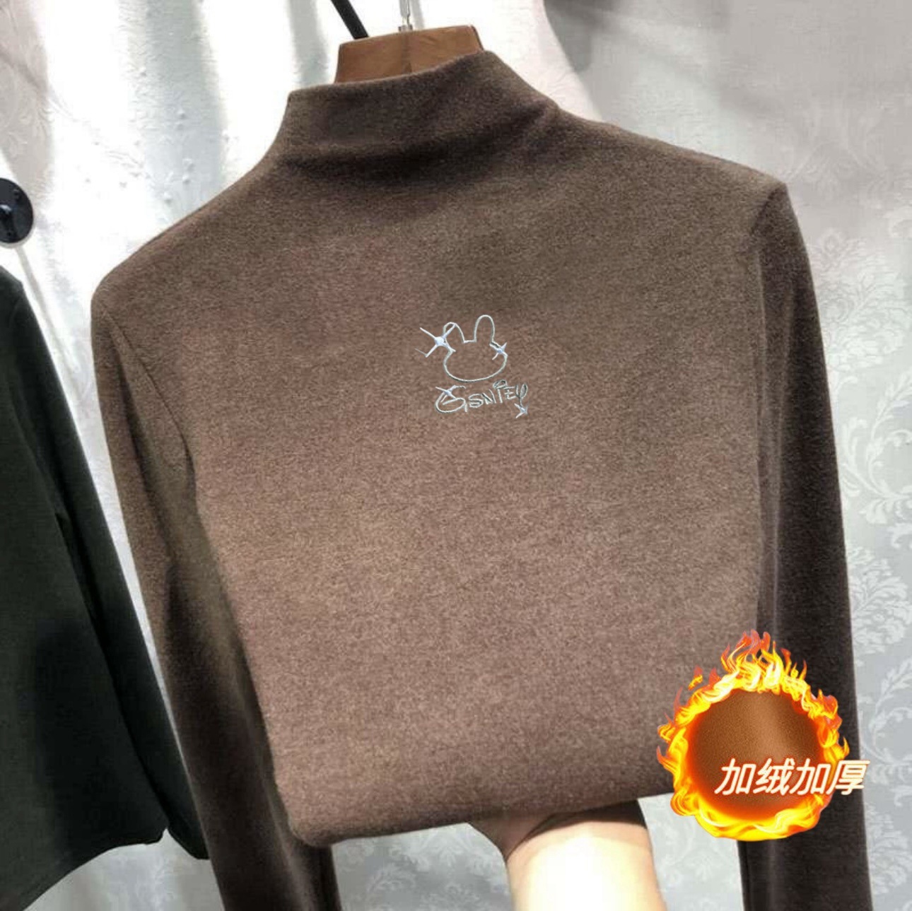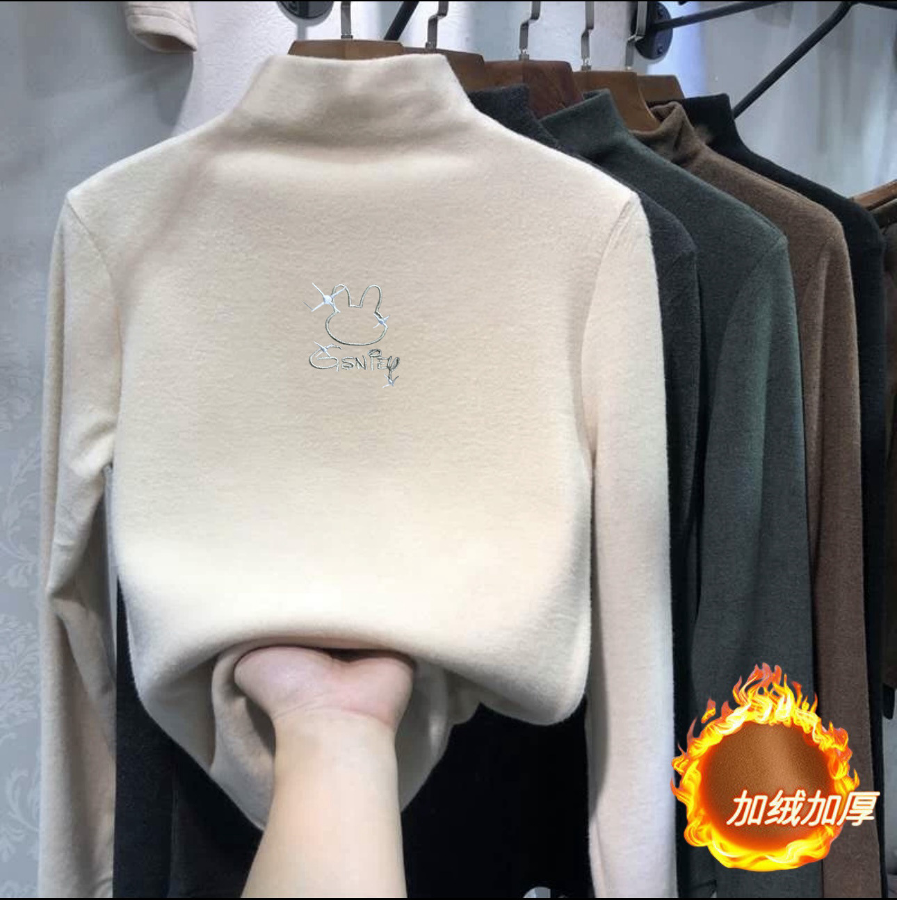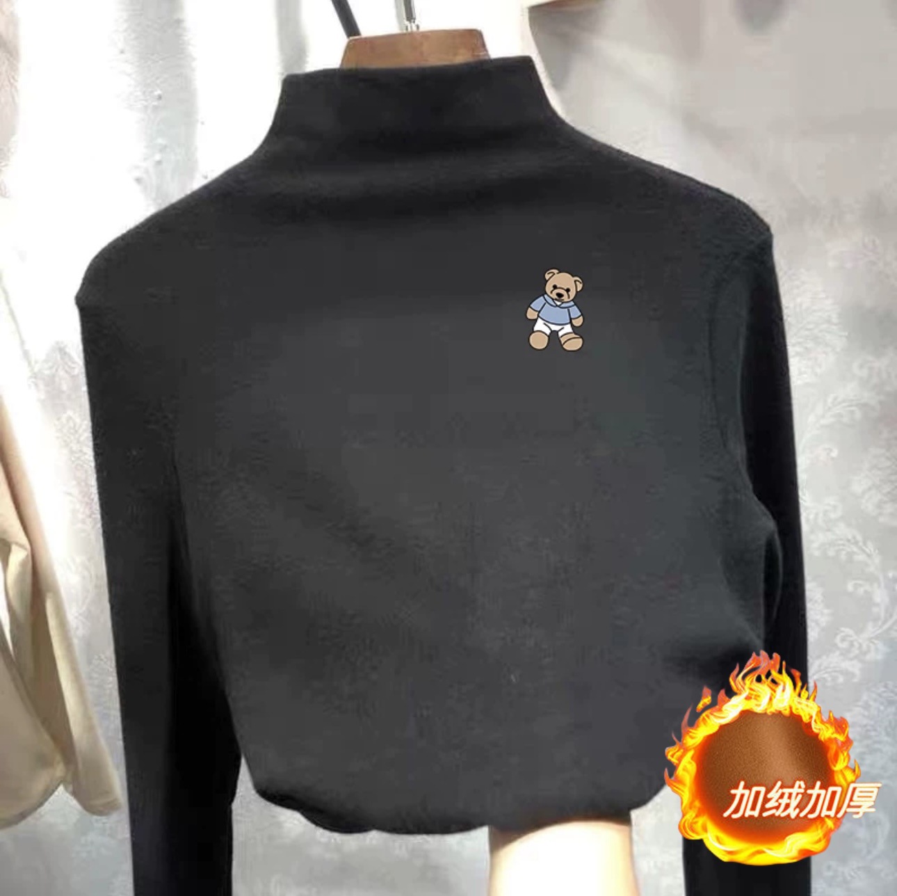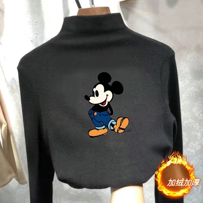 여아 베이스 셔츠 새로운 가을과 겨울 두꺼운 원피스 캐시미어 긴팔 기모 두꺼운 반 높이 칼라 스타일리스트 탑스토어 가기