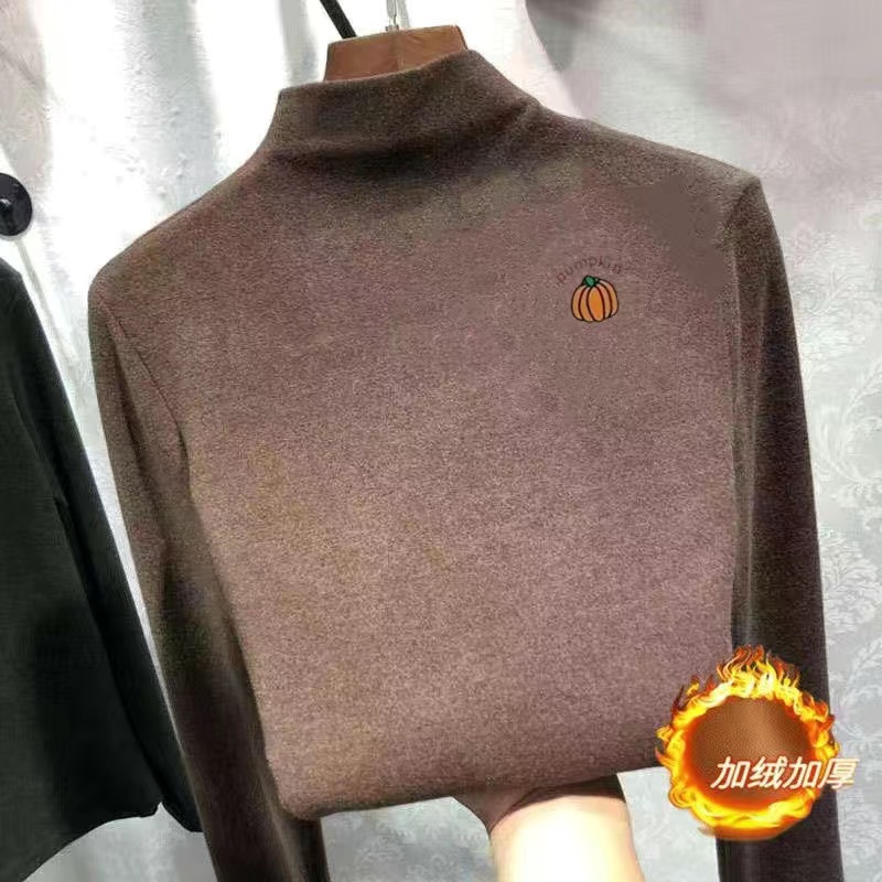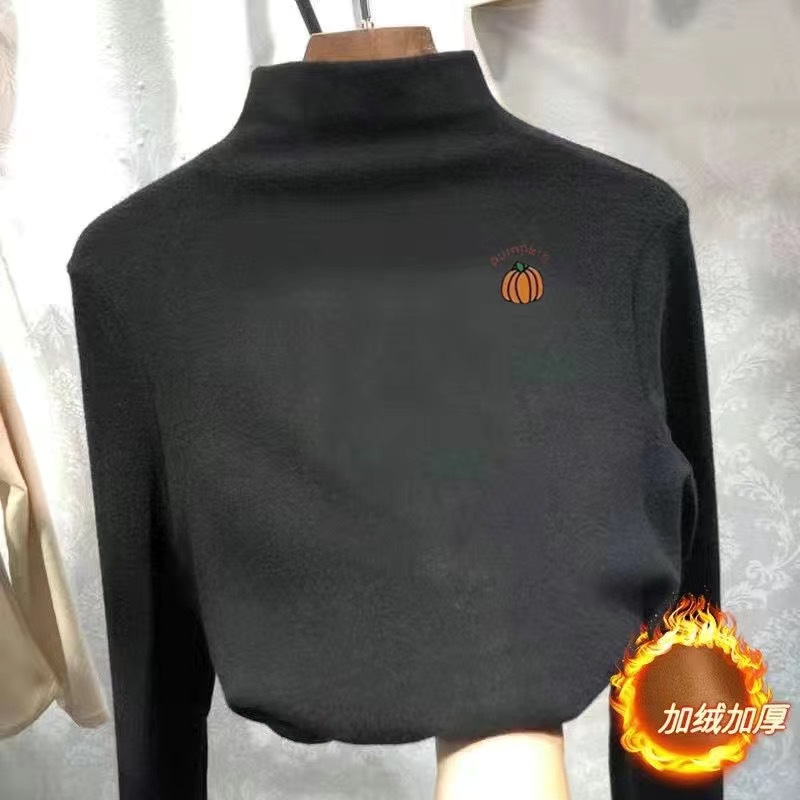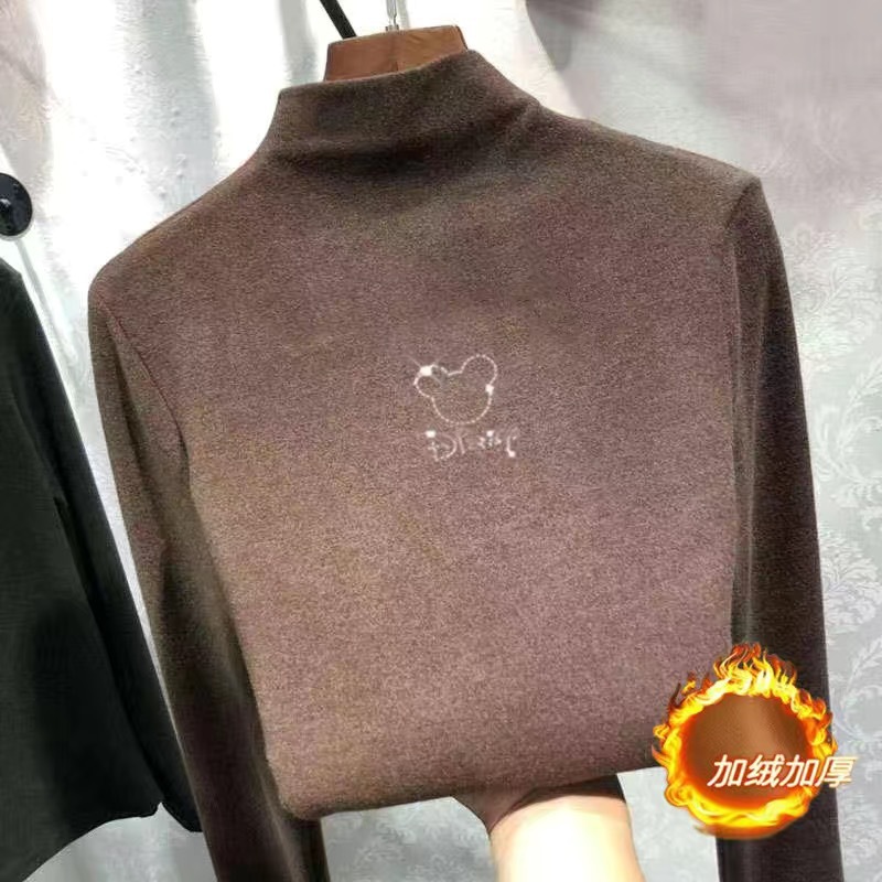 여아 베이스 셔츠 새로운 가을과 겨울 두꺼운 원피스 캐시미어 긴팔 기모 두꺼운 반 높이 칼라 스타일리스트 탑