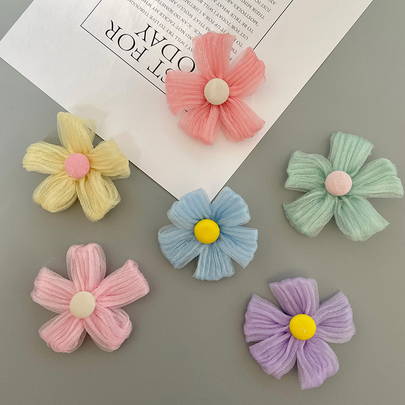 새로운 diy 수제 3 차원 직물 5 꽃잎 원사 꽃 어린이 머리 머리 머리 머리 액세서리 의류 액세서리 꽃 액세서리