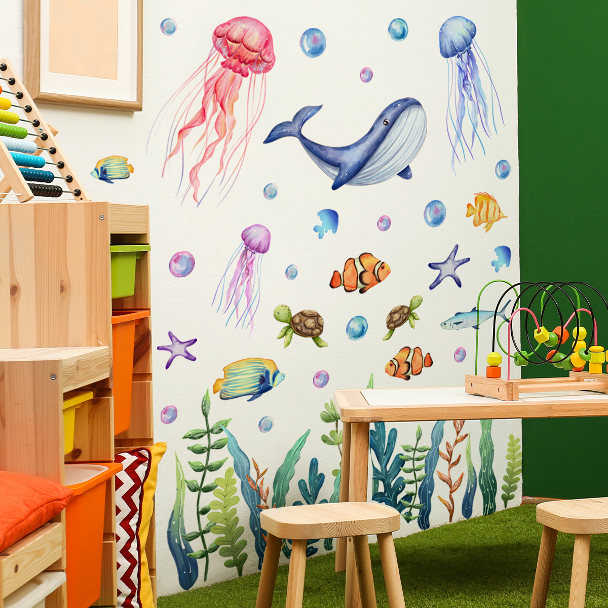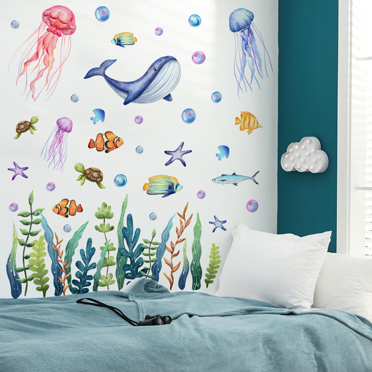 MS2136-KQ 해저 동물 고래 해파리 벽 스티커 어린이 방 장식 벽 스티커 자체 접착 벽 스티커스토어 가기