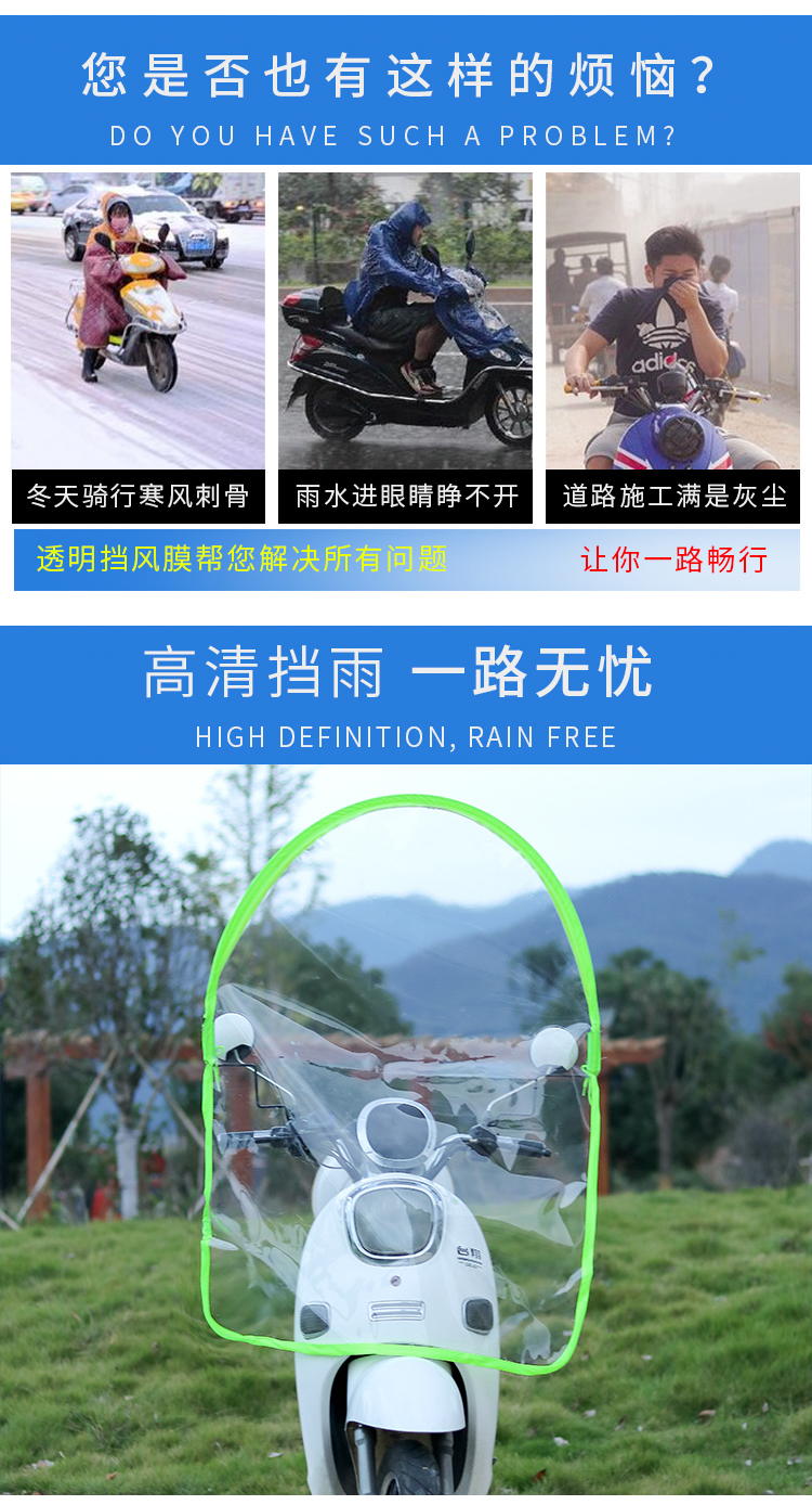 지퍼가 달린 전기 오토바이 앞 유리 투명 배터리 여성용 페달 자전거 증가 높은 앞 비 및 앞 유리 커버스토어 가기