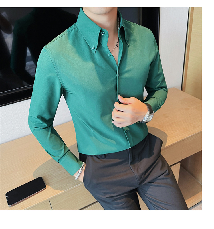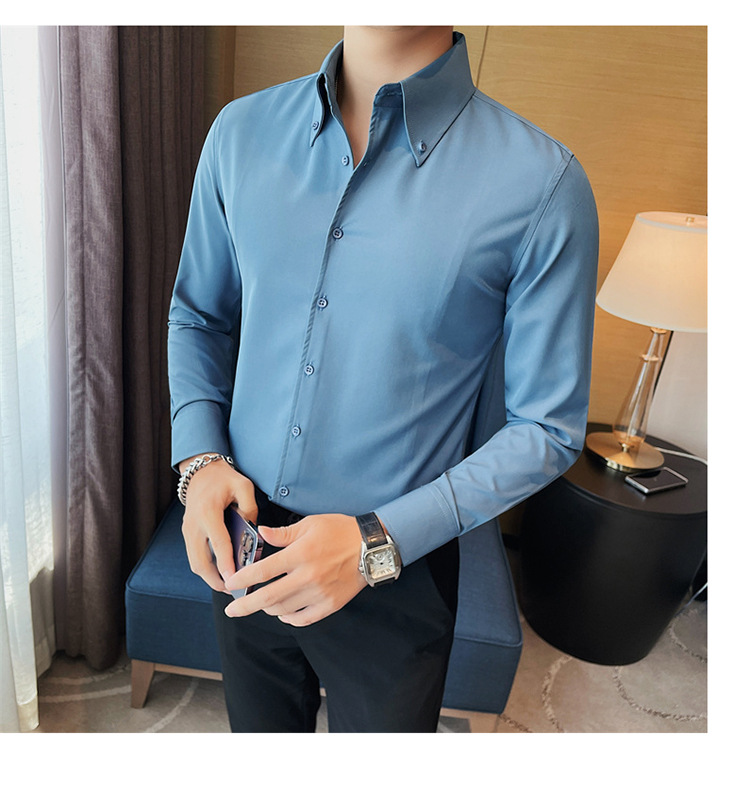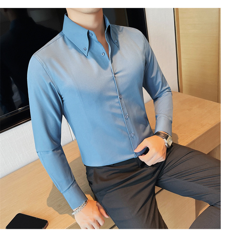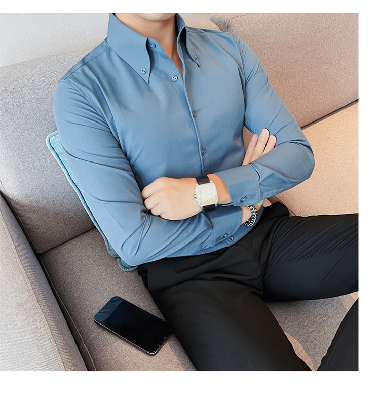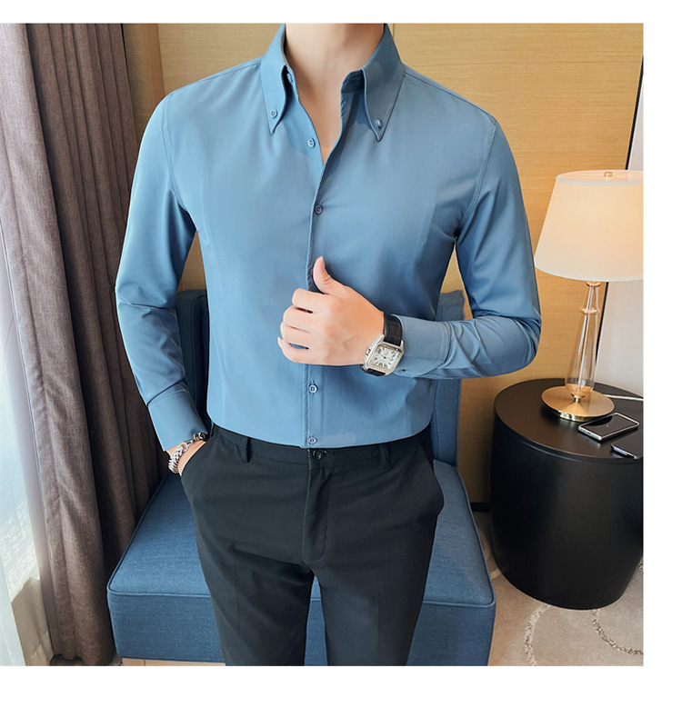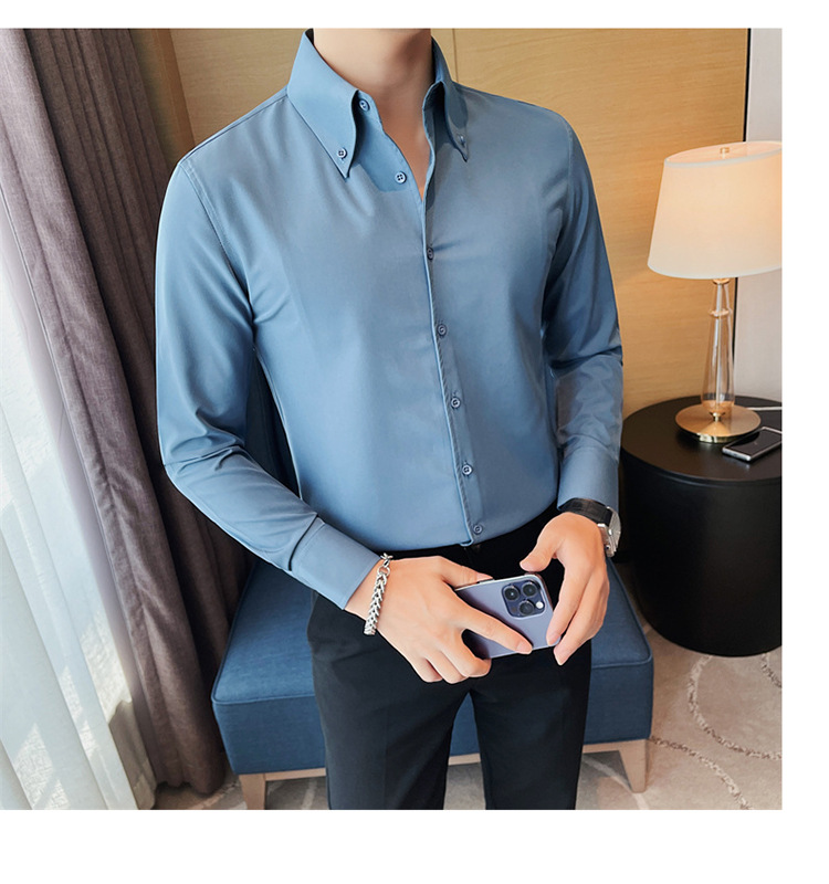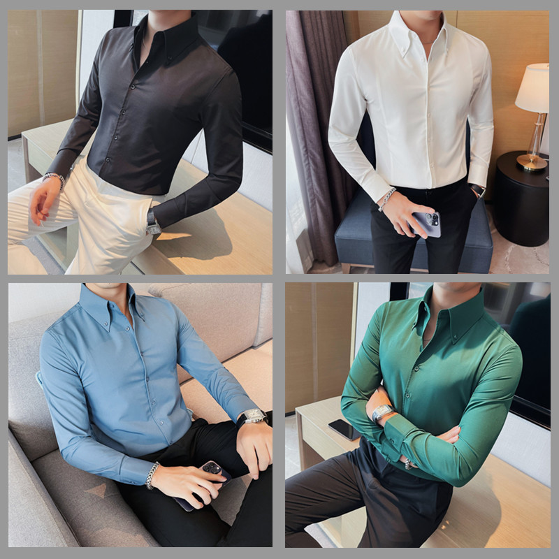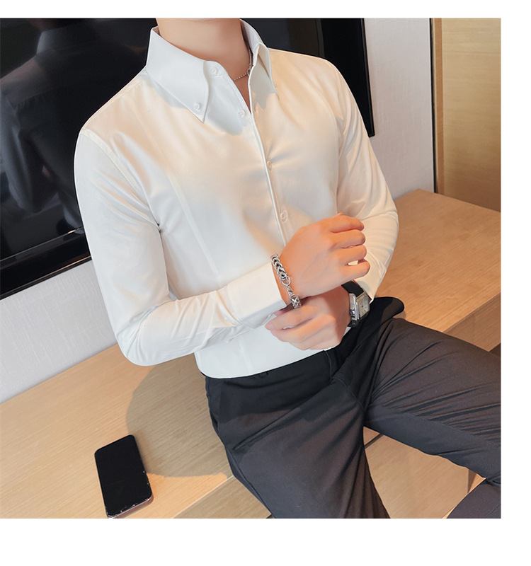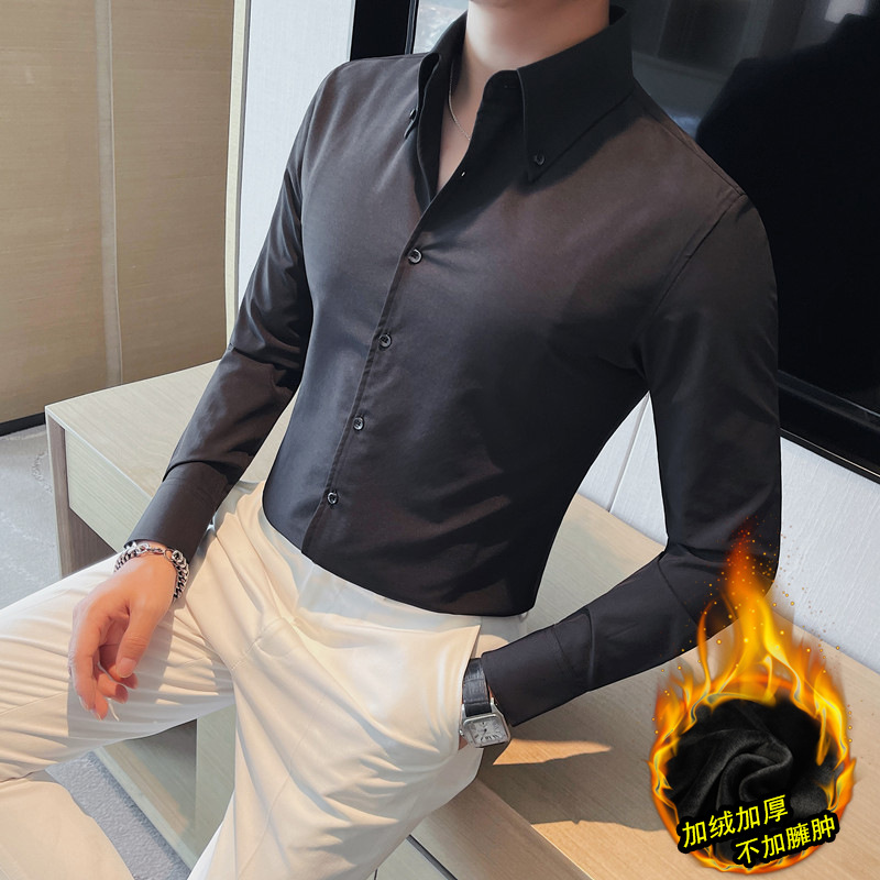 Haowu 추천 23 가을 새로운 남자의 긴 소매 셔츠 큰 칼라 유행 캐주얼 슬림 핏 셔츠 쉐이크 톤 폭발스토어 가기
