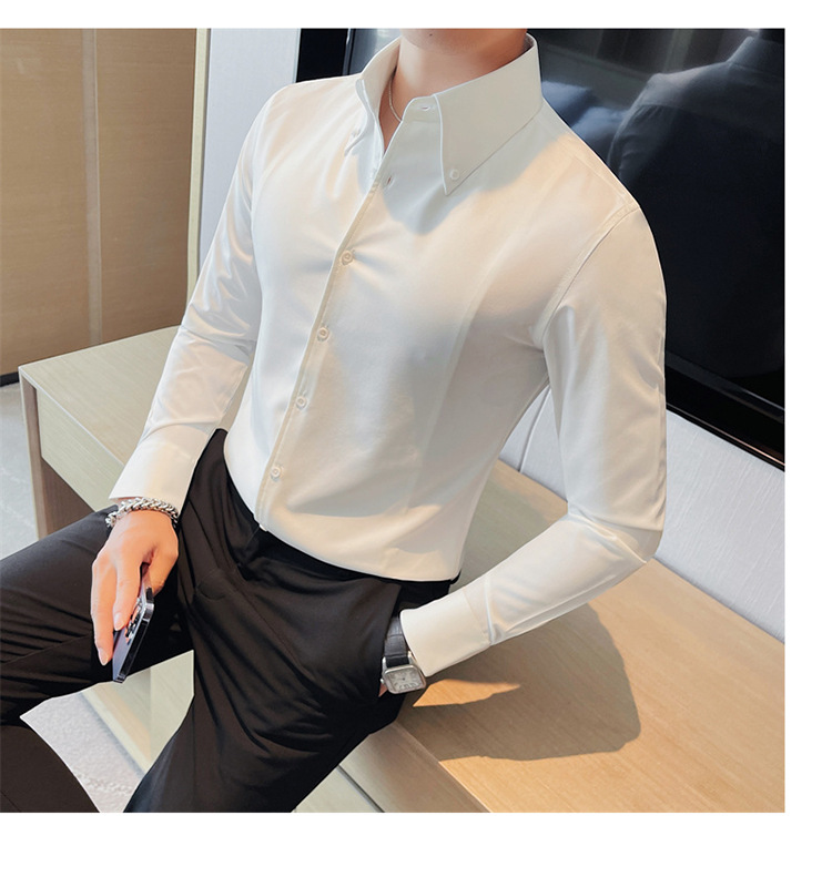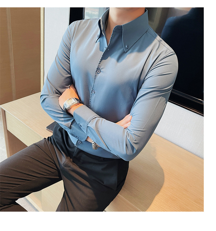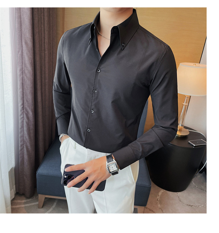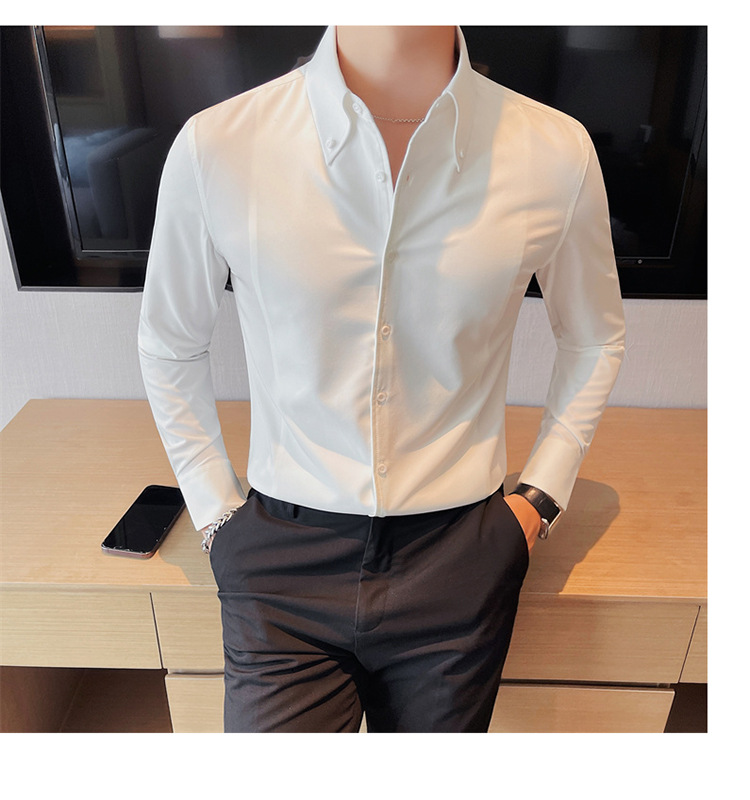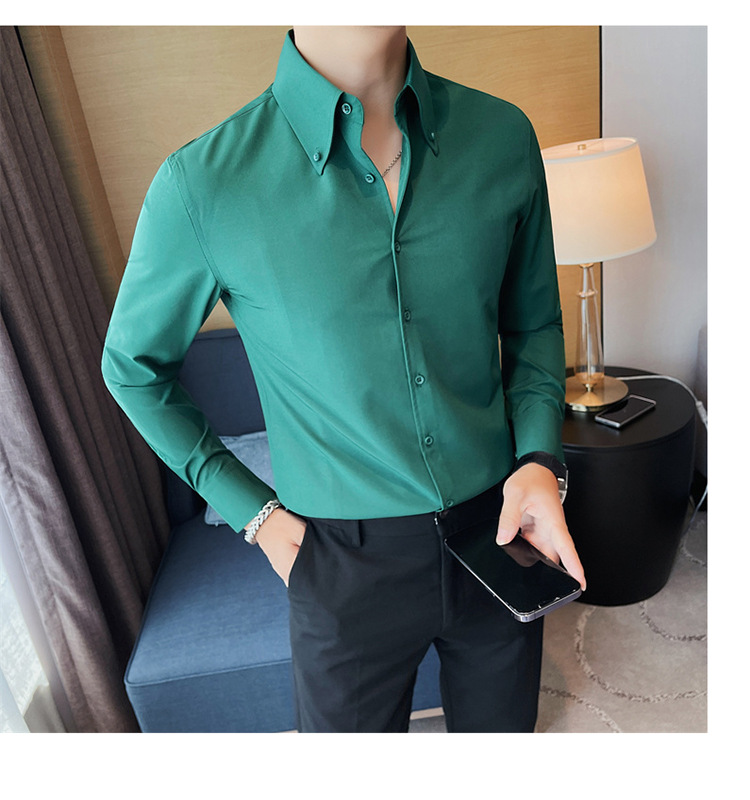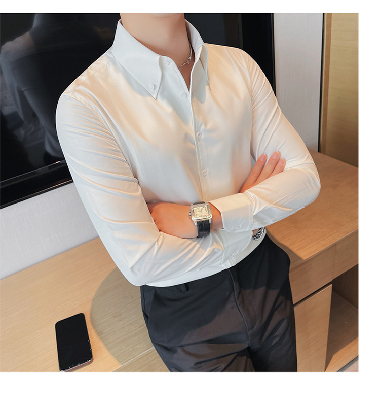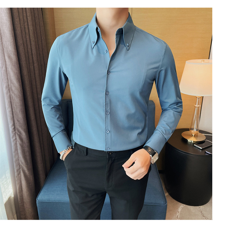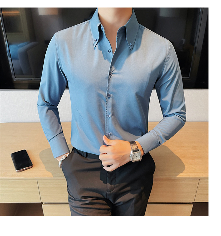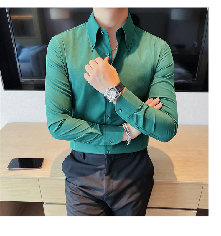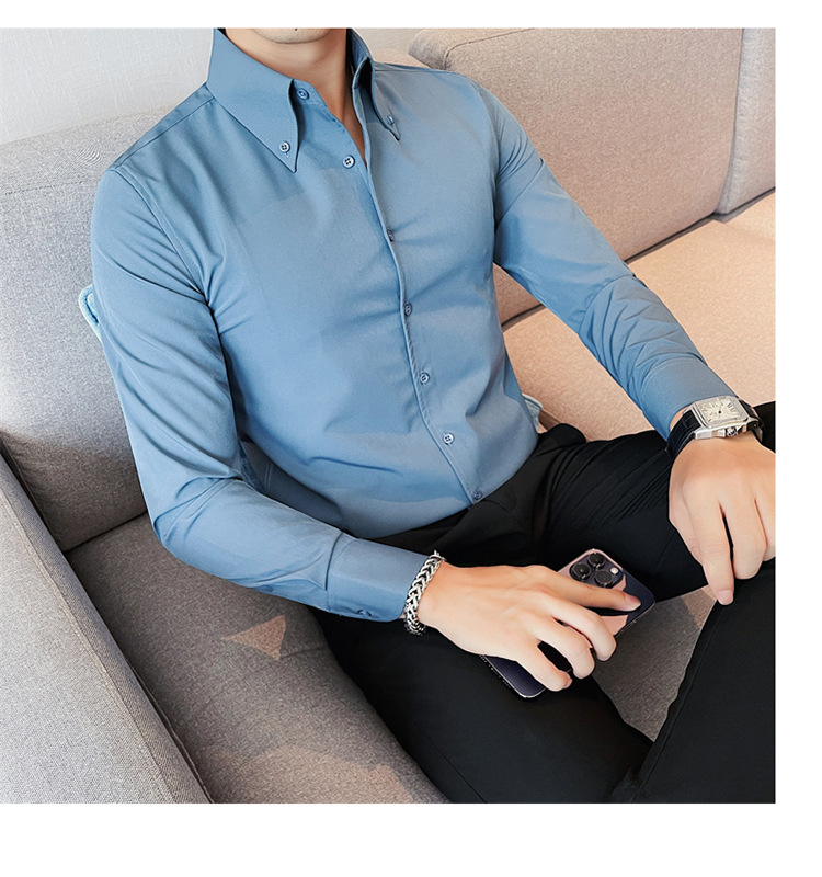 Haowu 추천 23 가을 새로운 남자의 긴 소매 셔츠 큰 칼라 유행 캐주얼 슬림 핏 셔츠 쉐이크 톤 폭발스토어 가기
