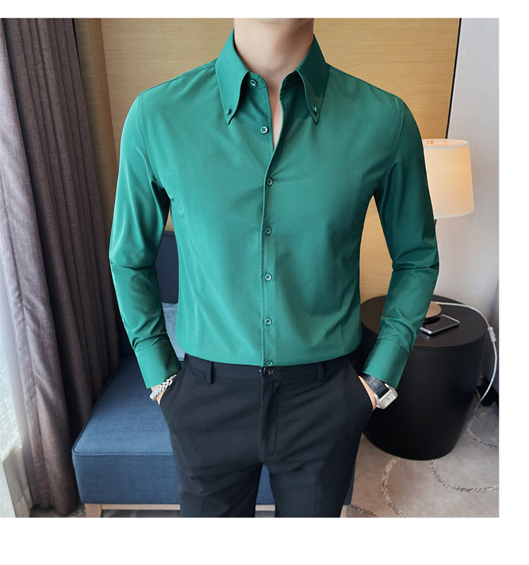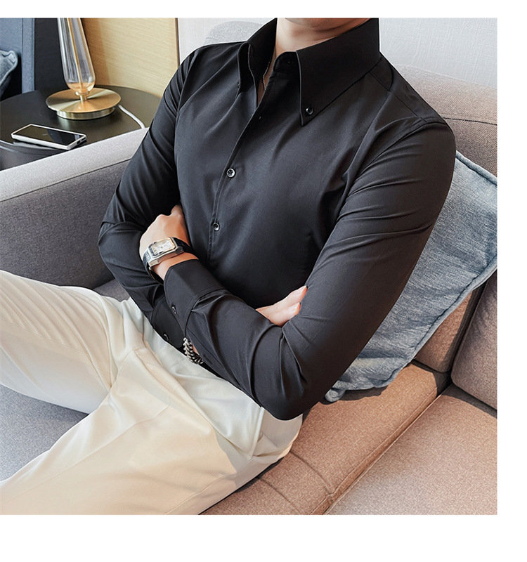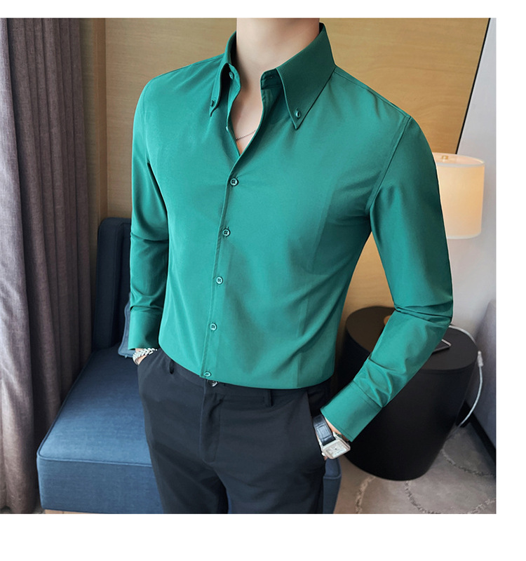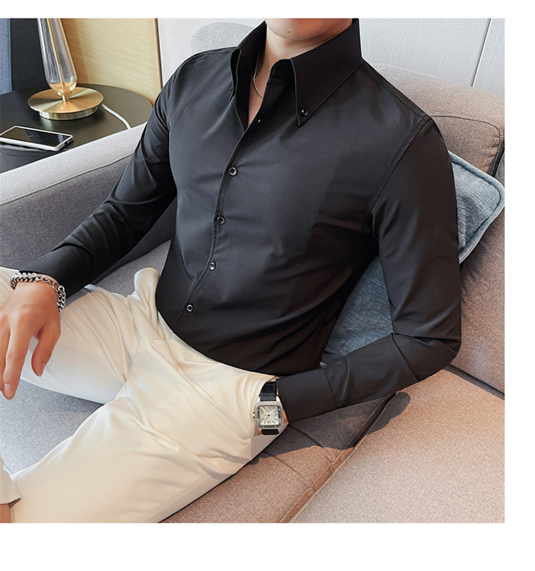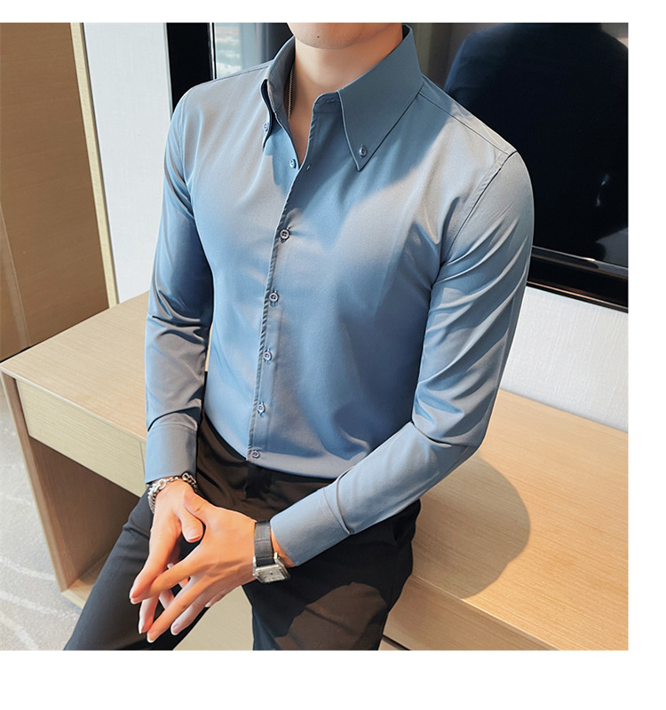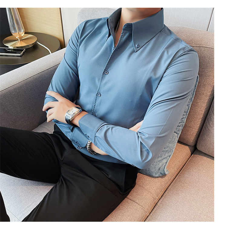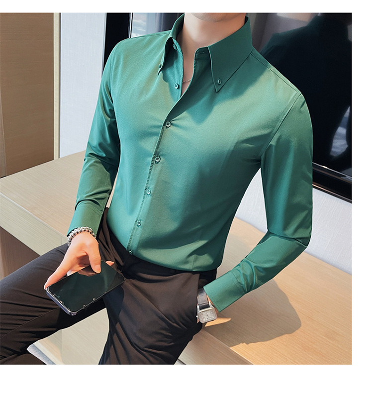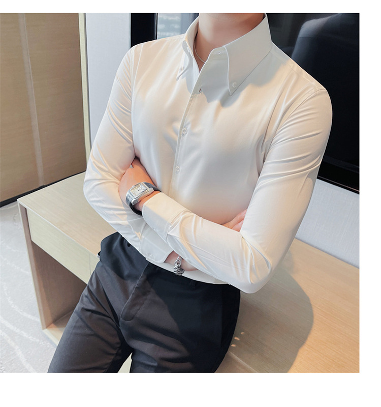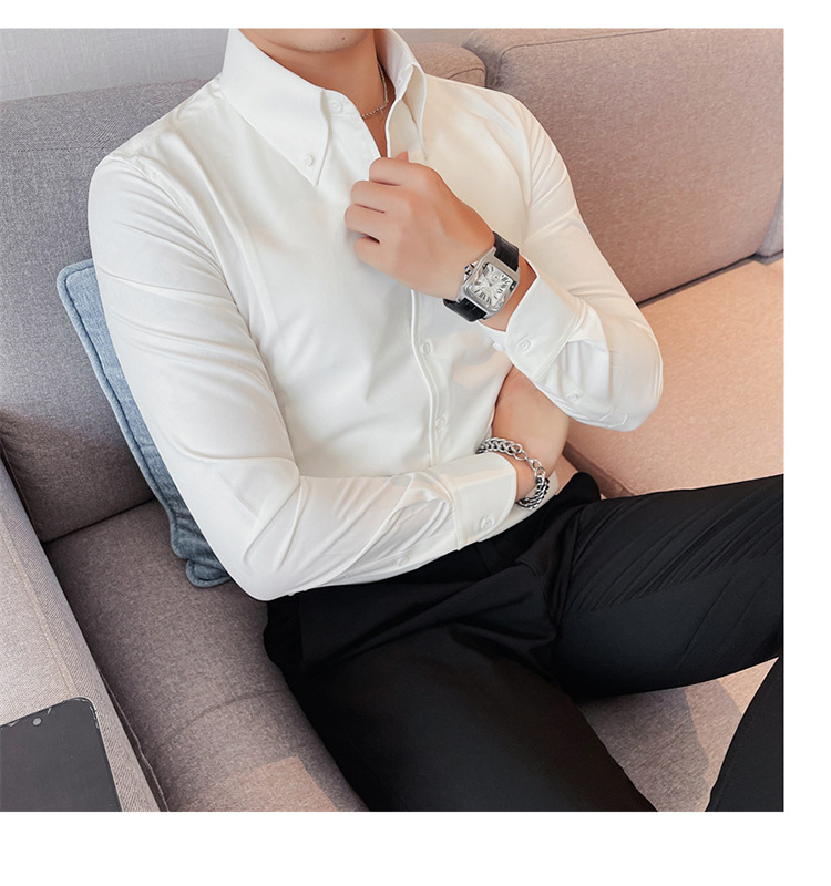 Haowu 추천 23 가을 새로운 남자의 긴 소매 셔츠 큰 칼라 유행 캐주얼 슬림 핏 셔츠 쉐이크 톤 폭발스토어 가기