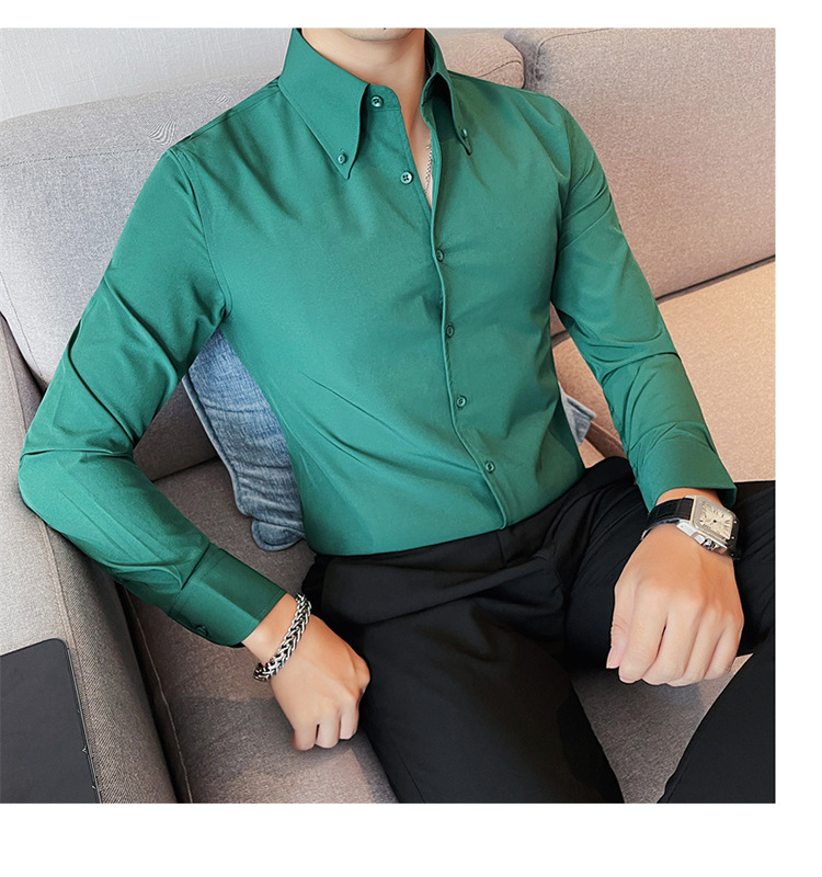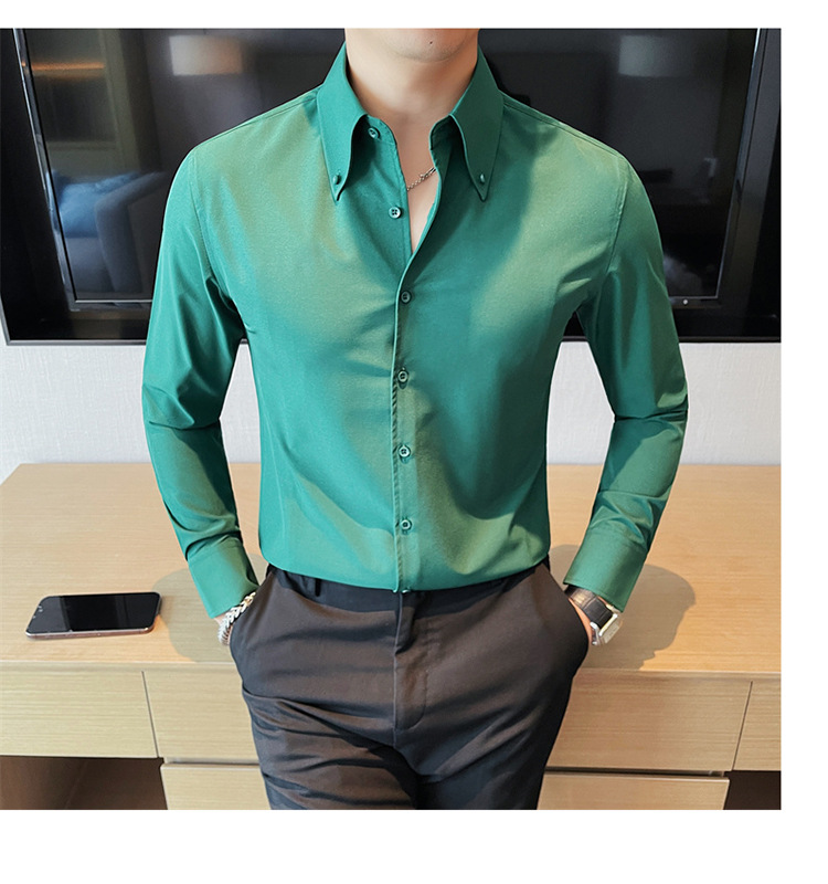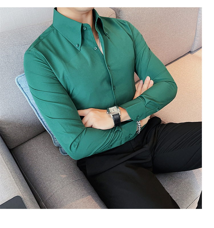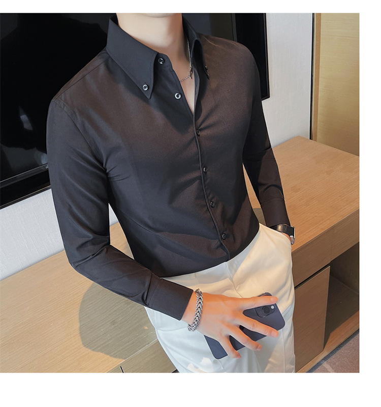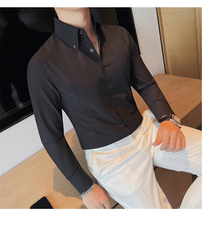 Haowu 추천 23 가을 새로운 남자의 긴 소매 셔츠 큰 칼라 유행 캐주얼 슬림 핏 셔츠 쉐이크 톤 폭발