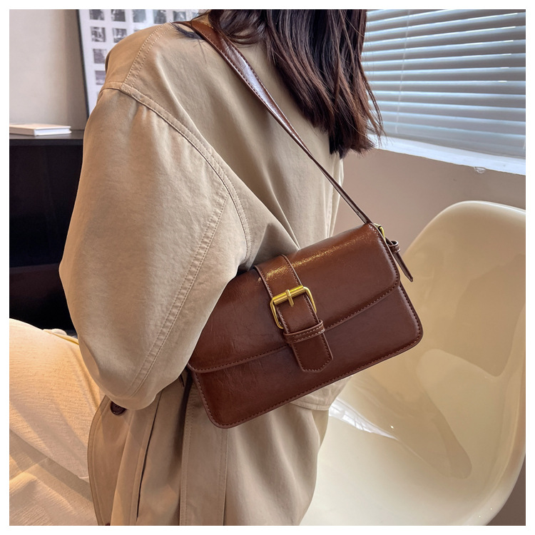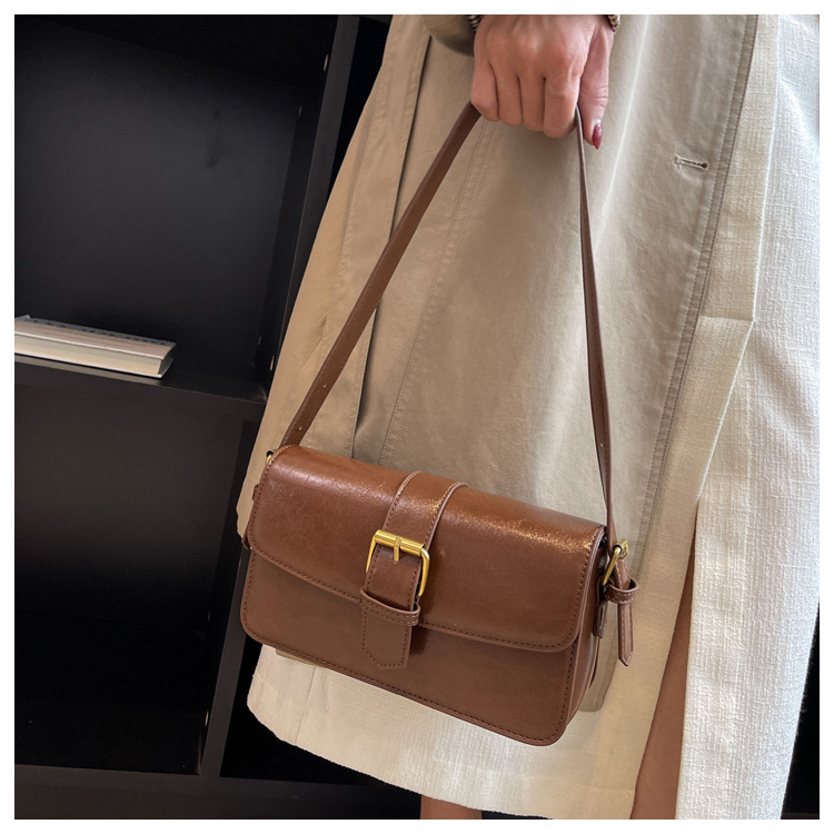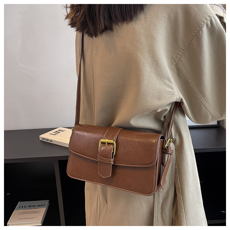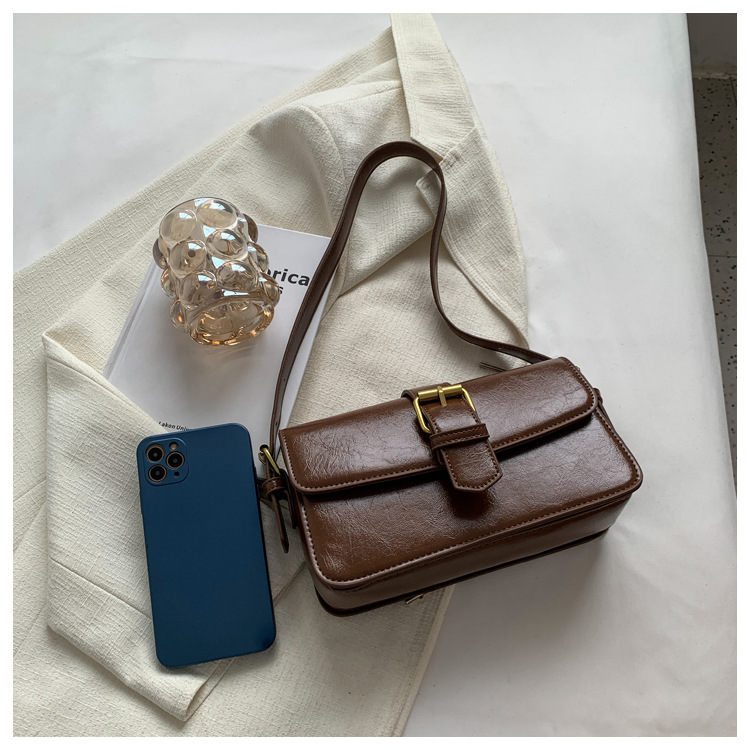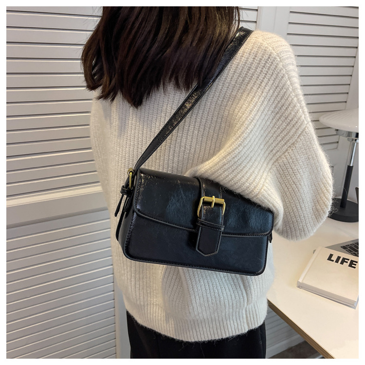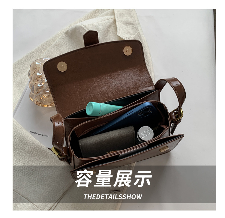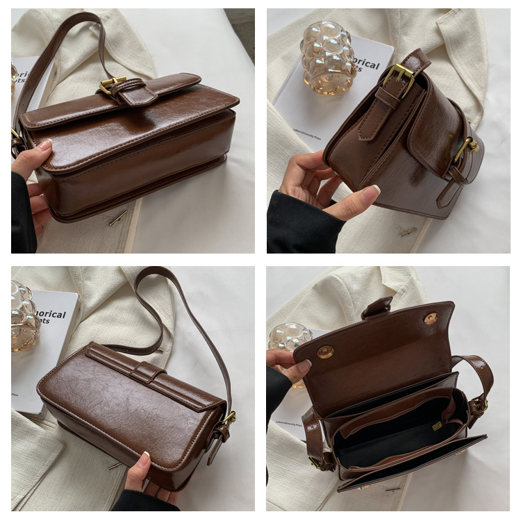 질감 작은 Crowdsourcing 가방 여성의 2022 새로운 가방 유행 왁스 가죽 숄더 크로스 바디 백 빈티지 모든 일치 작은 사각형 가방스토어 가기