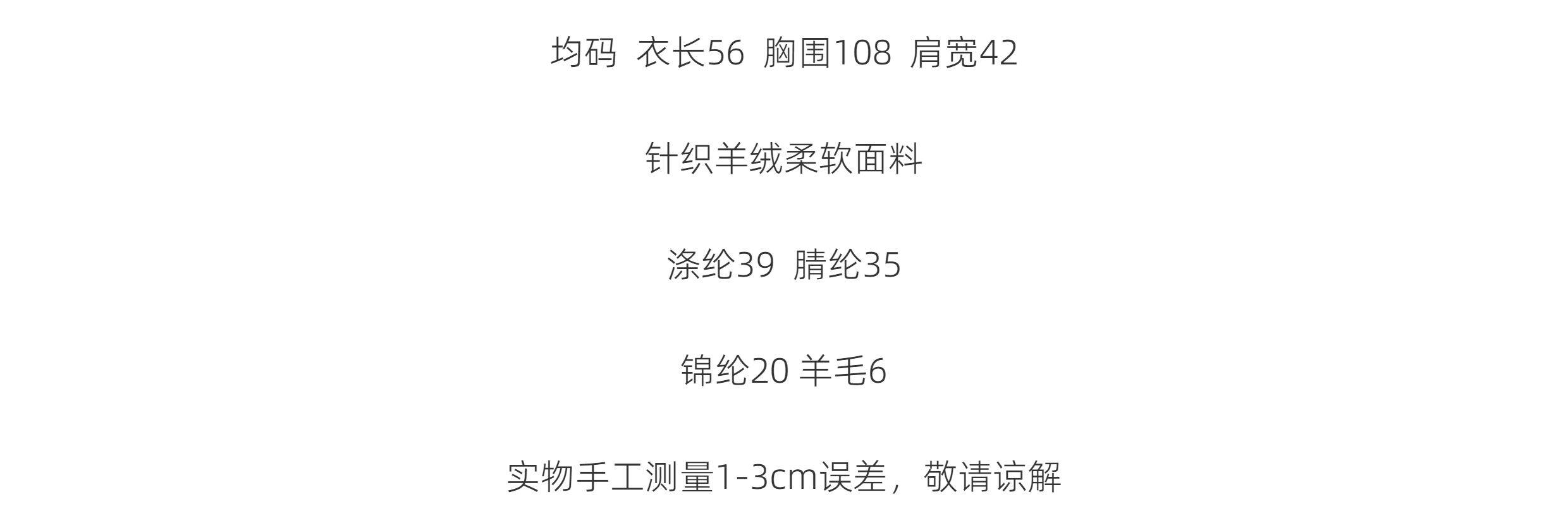 衣长:57cm 胸围:106cm 肩宽:42CM 连肩袖长:65cm