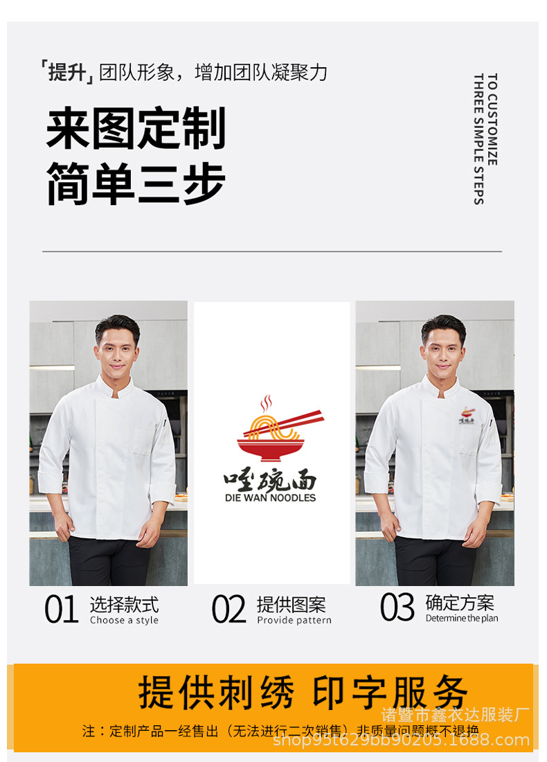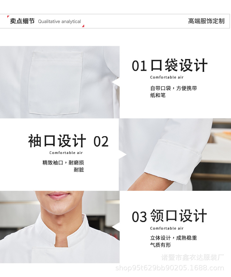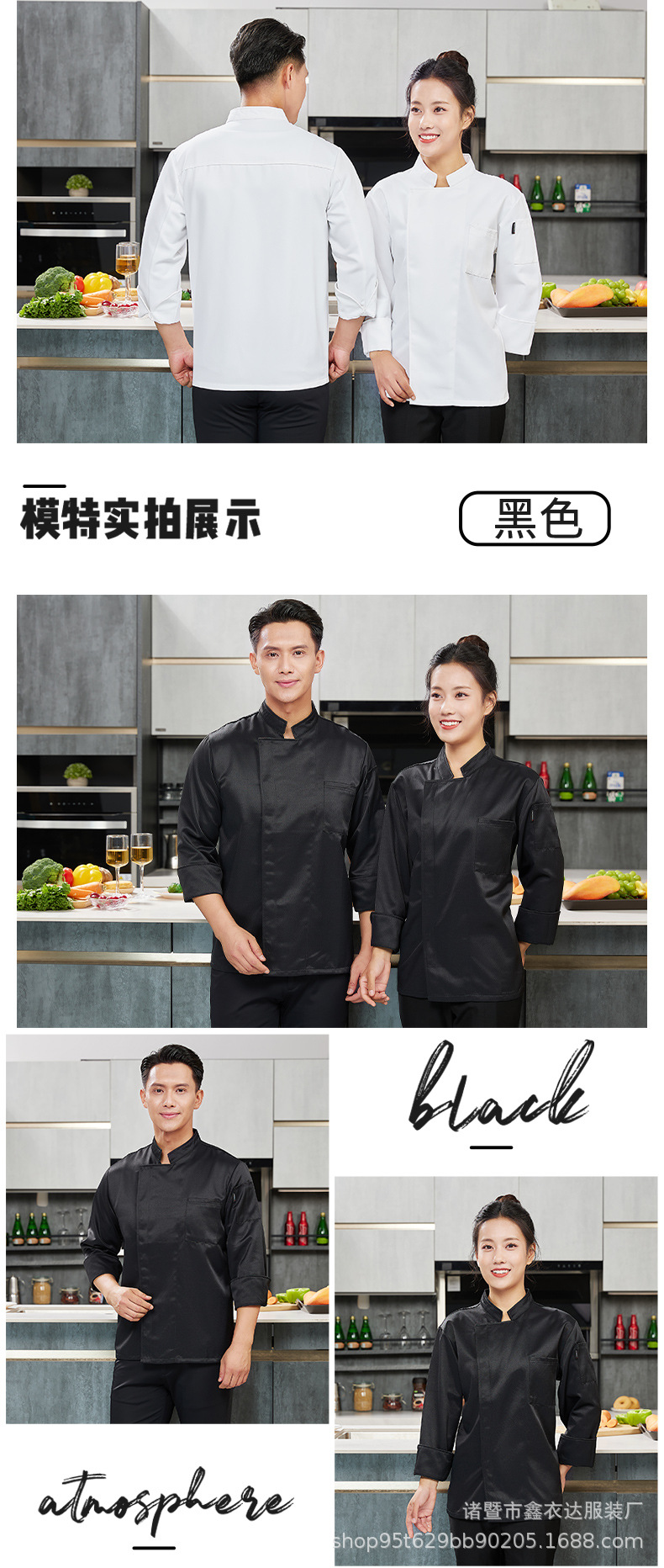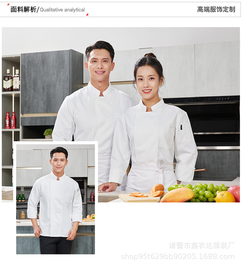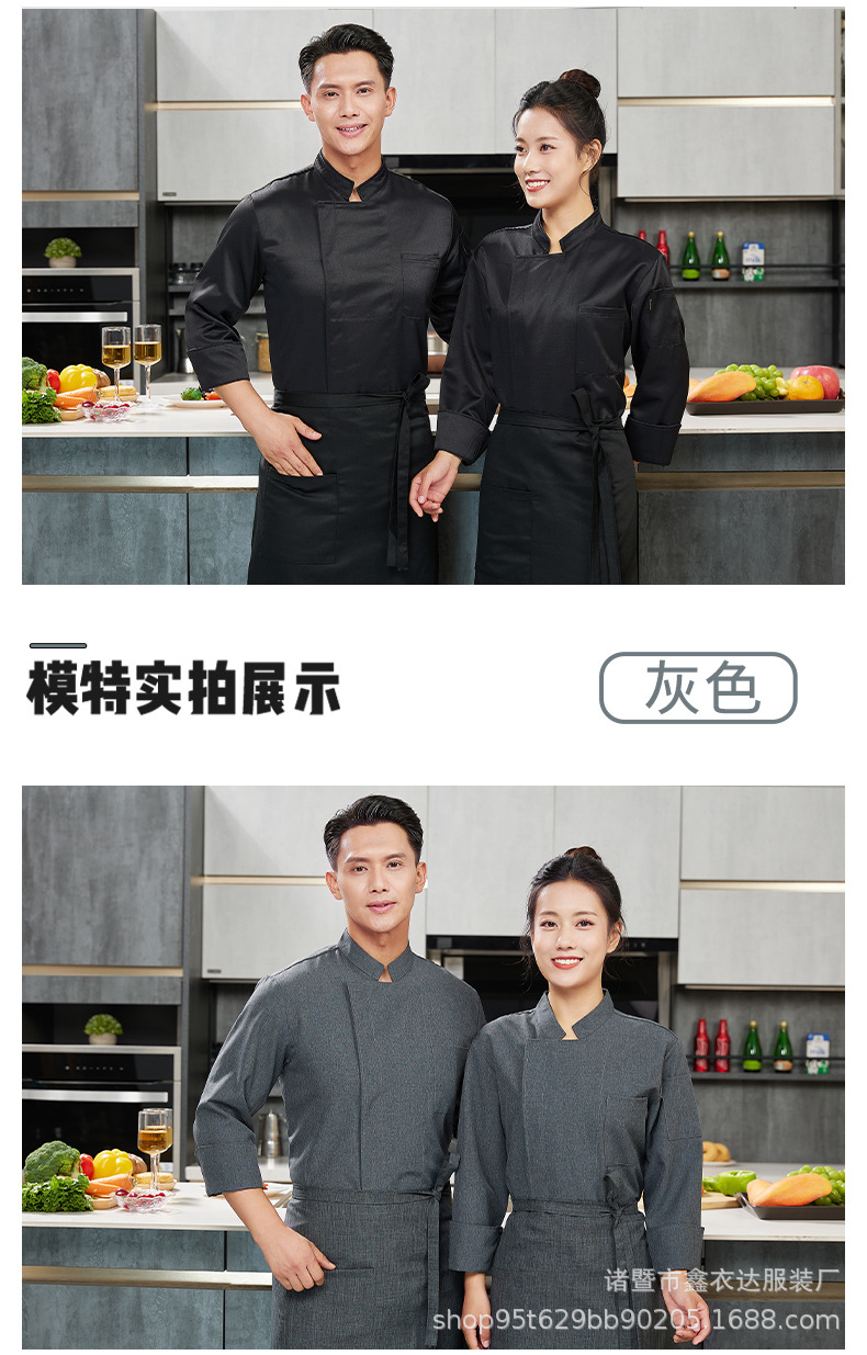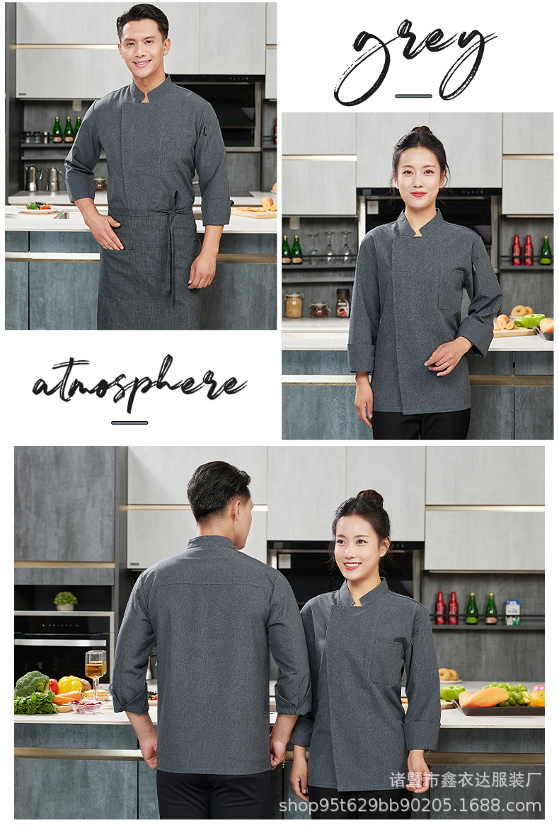고급 회색 요리사 바지 긴팔 주방 주방 매점 레스토랑 레스토랑 작업복 남녀 요리사 취사스토어 가기
