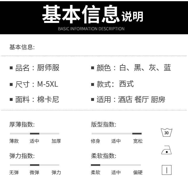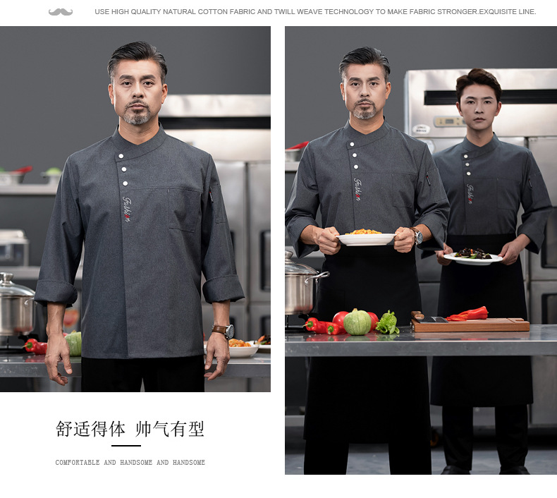 고급 케이터링 호텔 주방장 바지 주방 베이킹 남성 가을과 겨울 서양 레스토랑 주방 매점 긴 소매 대형스토어 가기