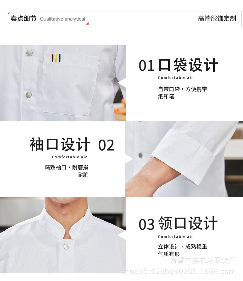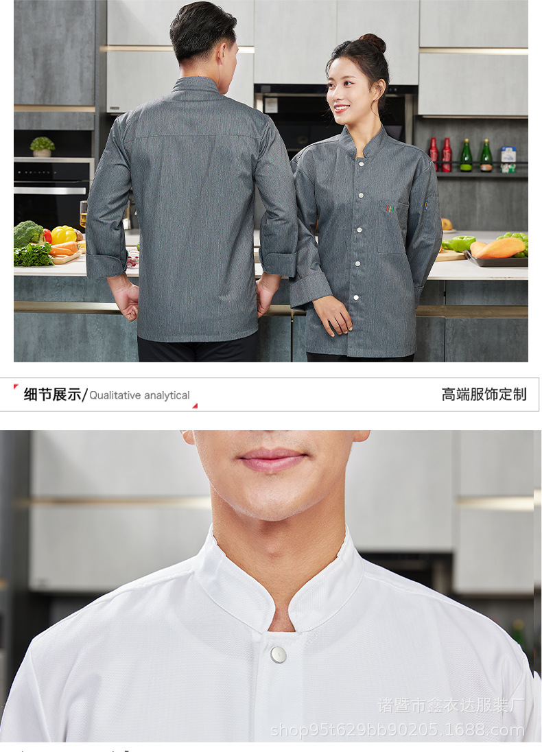 단일 행 벨벳 요리사 작업복 긴팔 요리 레스토랑 매점 레스토랑 주방 의류 남성용 두꺼운 방한 요리사 의류 여성용스토어 가기