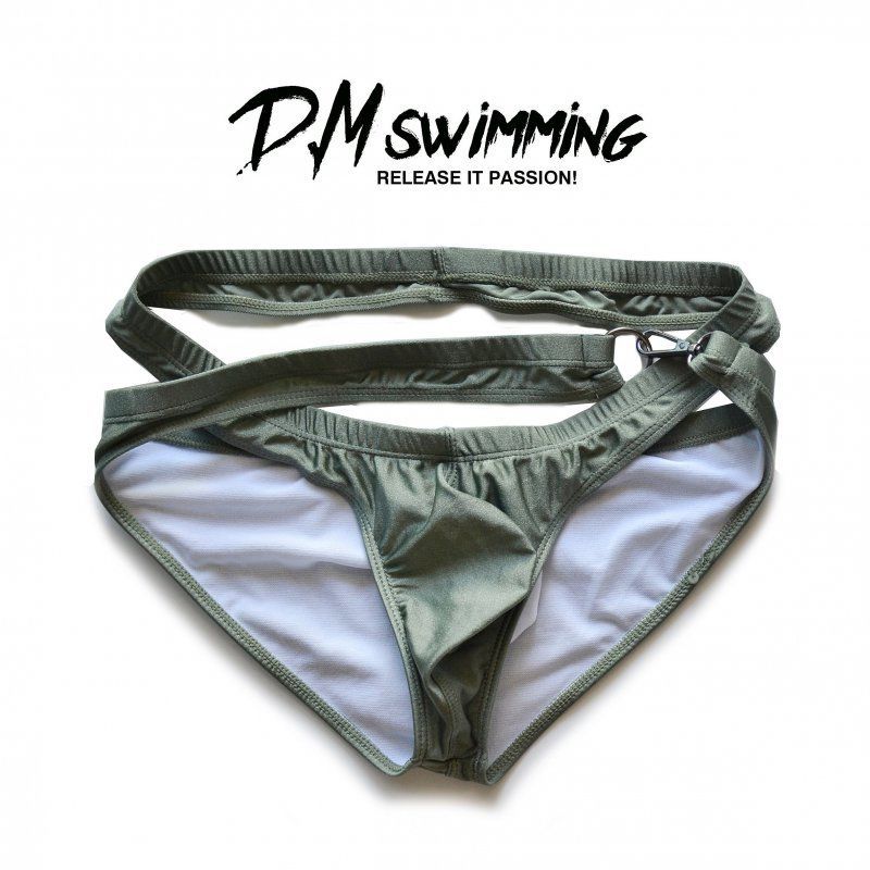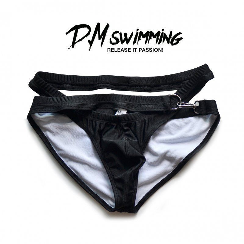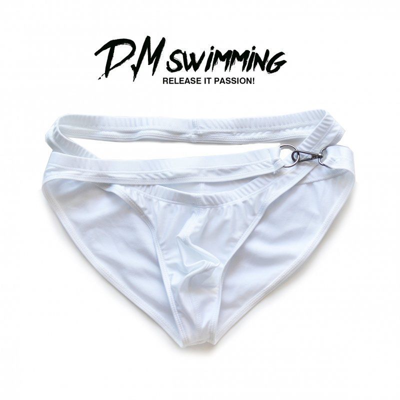 D.M 남자 삼각 수영 트렁크 패션 디자인 개인 패션 수영 속건 해변 파티 메탈 버클 낮은 허리 섹시
