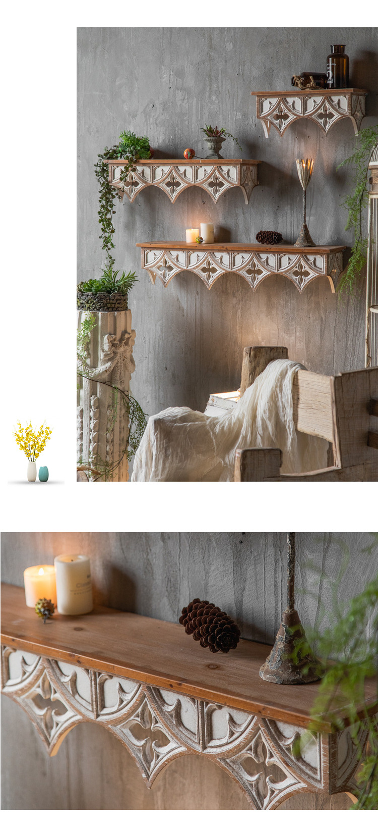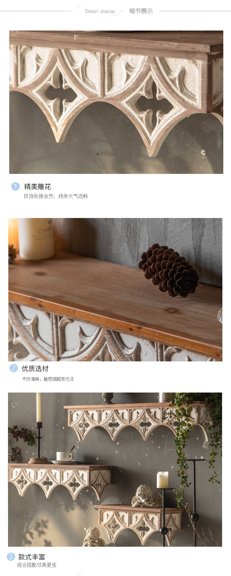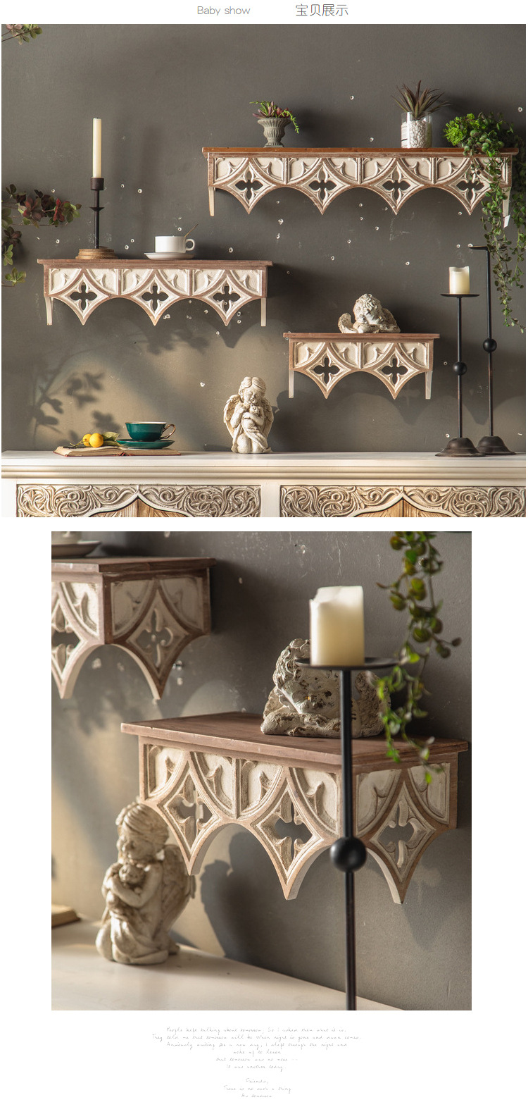 아메리칸 스타일 빈티지 조각 벽 선반 보관 랙 단단한 나무 장식 랙 거실 커피 숍 벽 장식 벽 브래킷