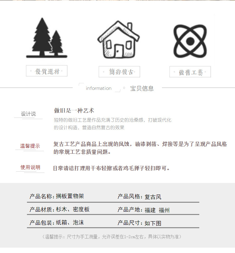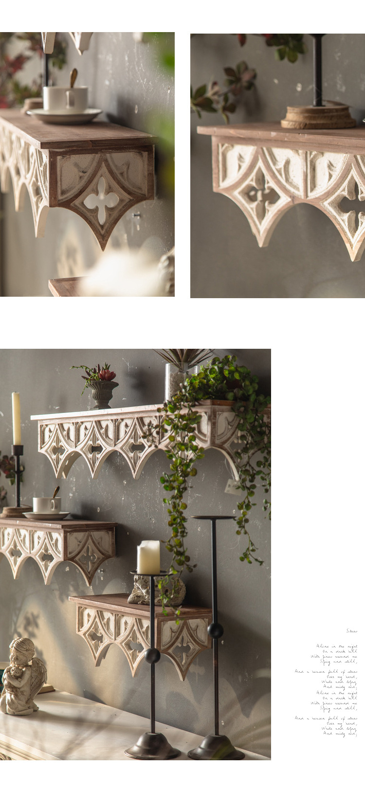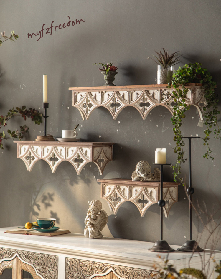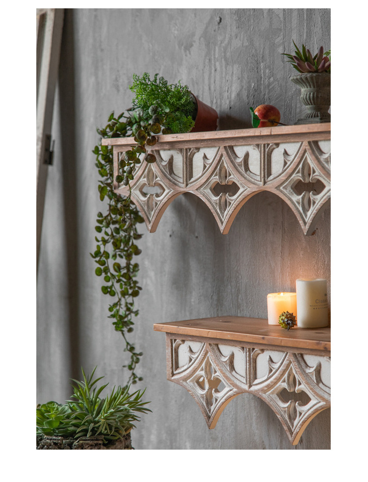 아메리칸 스타일 빈티지 조각 벽 선반 보관 랙 단단한 나무 장식 랙 거실 커피 숍 벽 장식 벽 브래킷