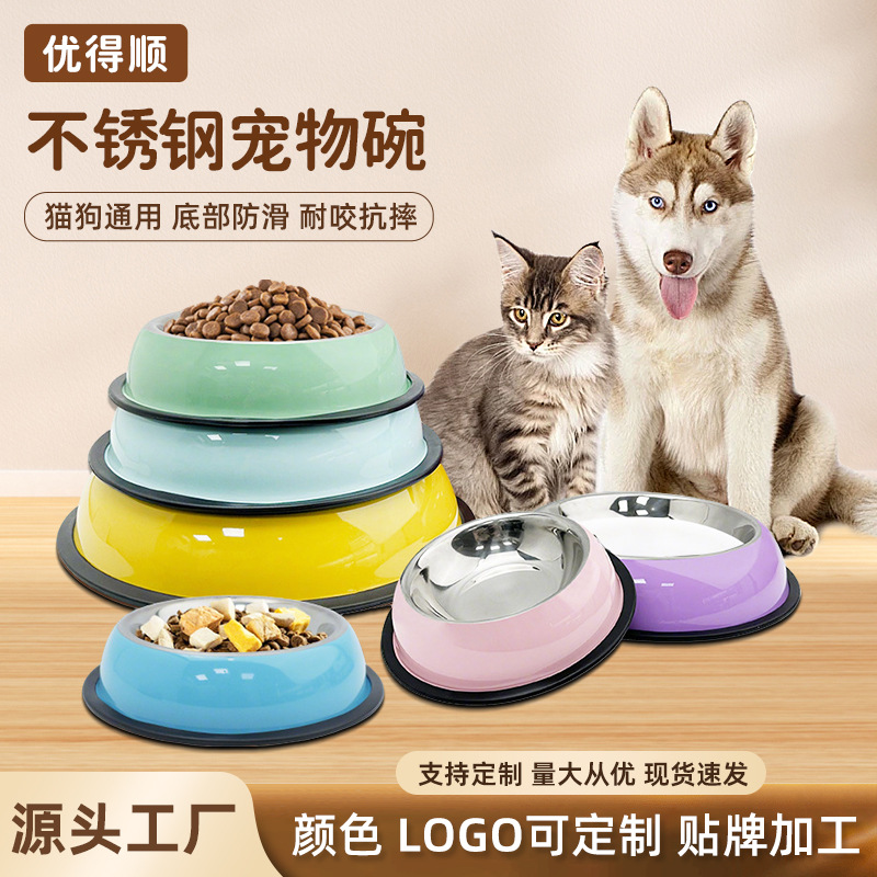 源头工厂不锈钢狗碗防滑耐摔宠物碗不易打翻猫碗可LOGO颜色定制