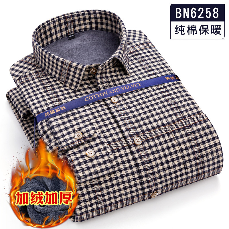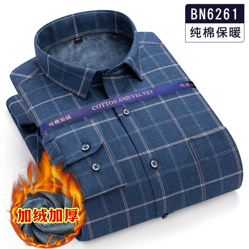 엄선된 2024년 겨울 신상 남성용 작은 격자무늬 셔츠 따뜻한 긴팔 순면 플러스 벨벳 두꺼운 캐주얼 셔츠