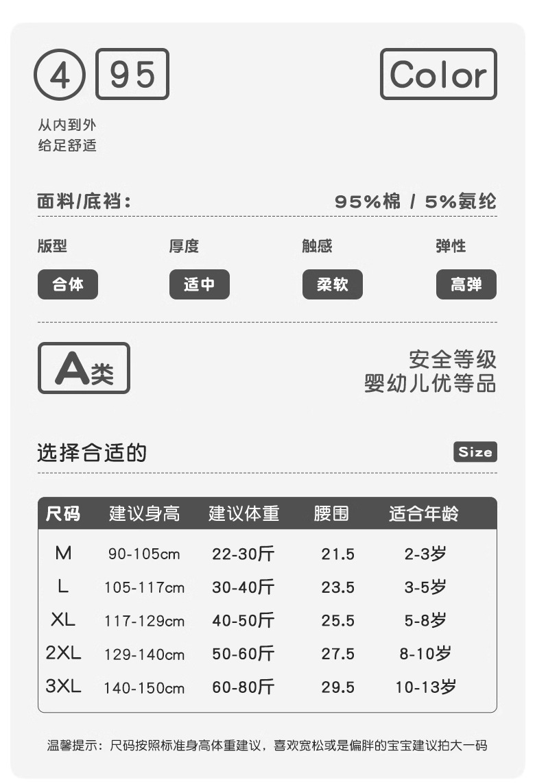 남아용 면 속옷 어린이 아기용 편안한 팬티 유아용 A급 신장면 사각팬티 중소형 어린이용