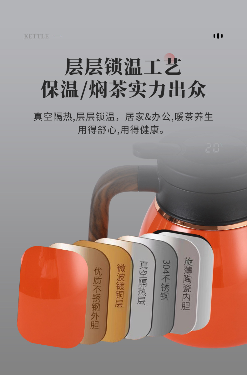 맞춤형 별도의 찐 주전자 316 스테인레스 스틸 주전자 손잡이 가정용 지능형 디스플레이 온도 Pu'er 열 냄비 도매