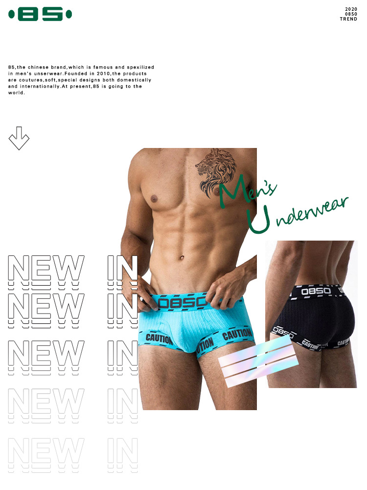 0850 재고 남성 속옷 복서 반바지 통기성 낮은 허리 U-볼록 디자인 개인 스트레치 슈퍼 사 반바지 BS3104스토어 가기