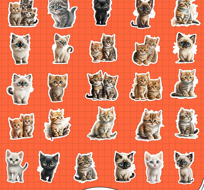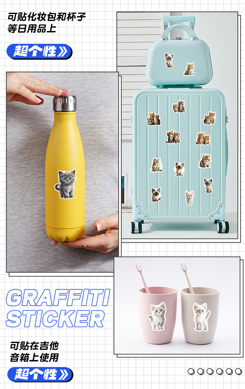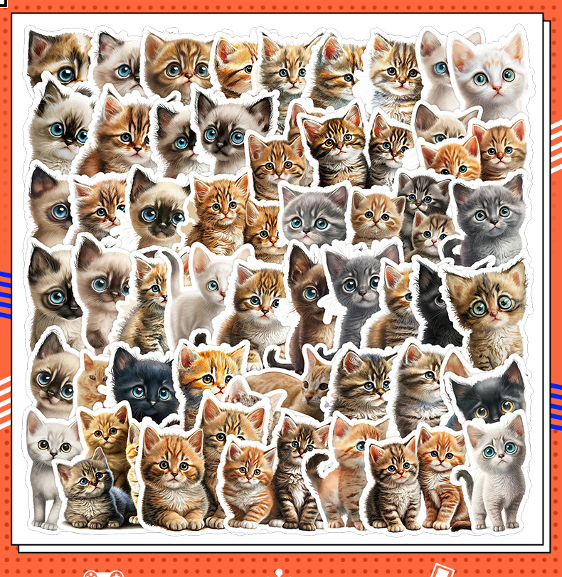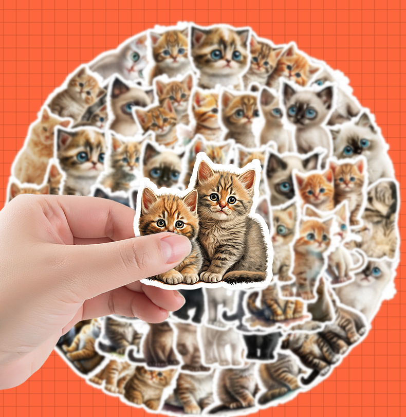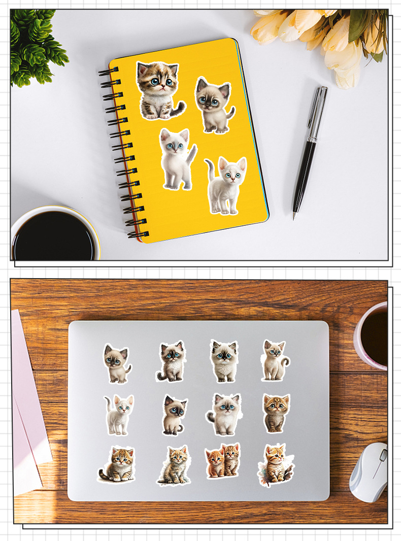 50 조각 귀여운 큰 눈 새끼 고양이 스티커 물 컵 휴대 전화 냉장고 장식 스티커 방수 창조적 인 저널 스티커 도매