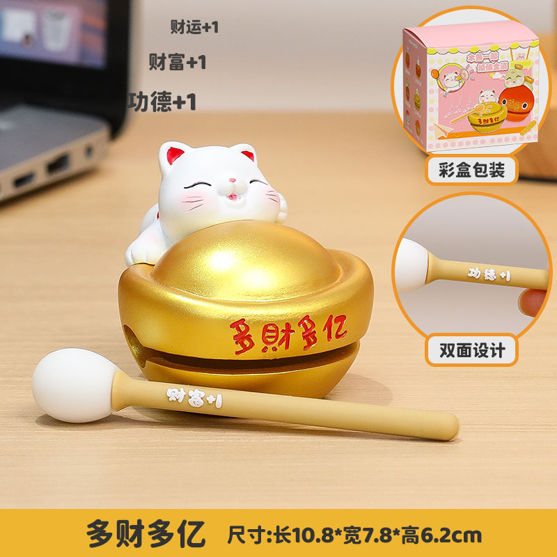 • 럭키 캣 소 목제 물고기 [화이트]]