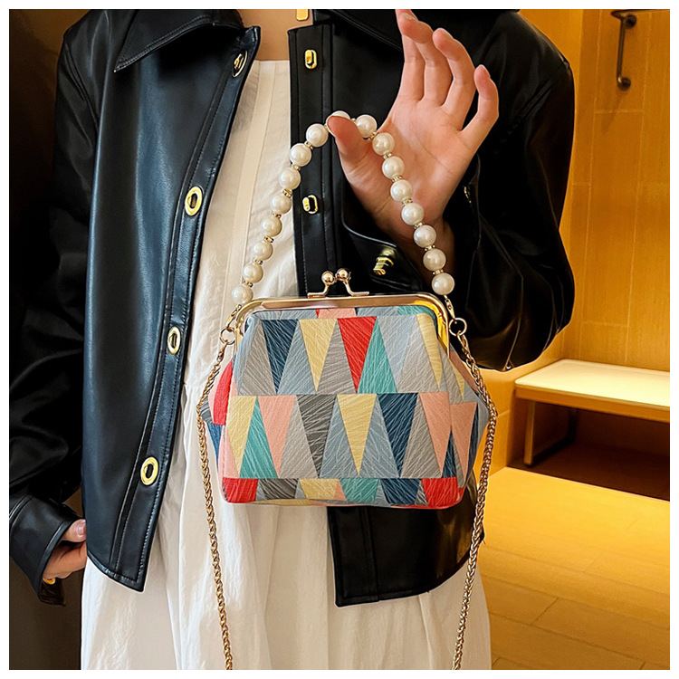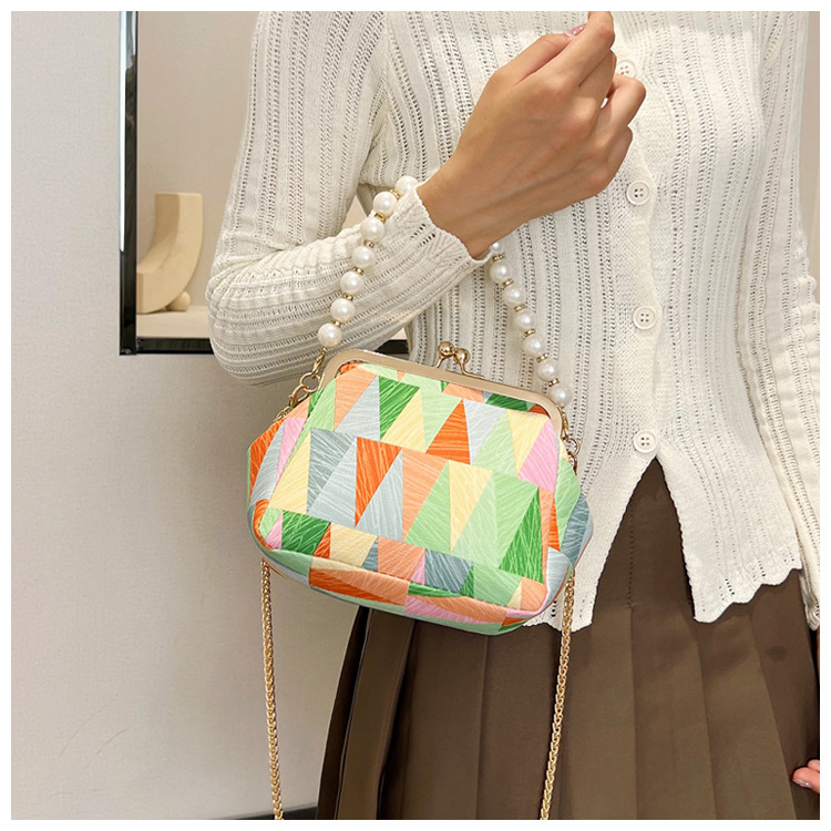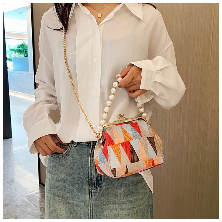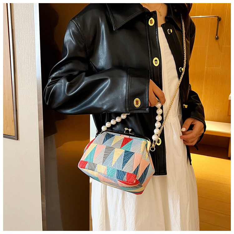 인기있는 대비 색상 간단한 작은 가방 서양 스타일 여성 가방 2023 가을 새로운 겨드랑이 유행 텍스트 휴대용 쉘 가방스토어 가기