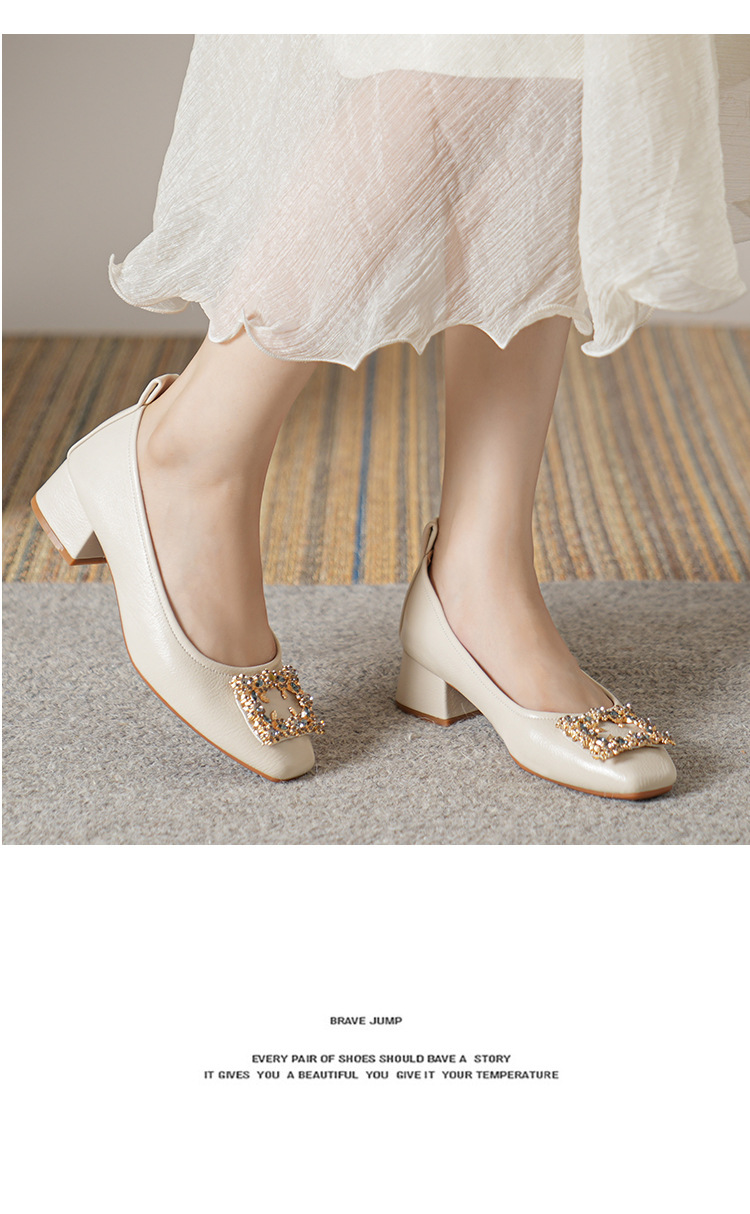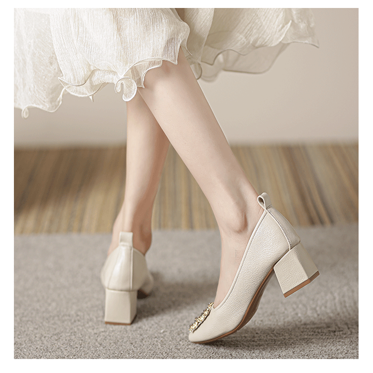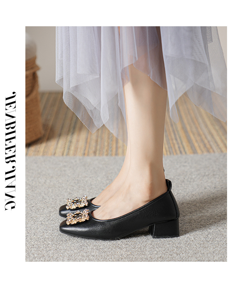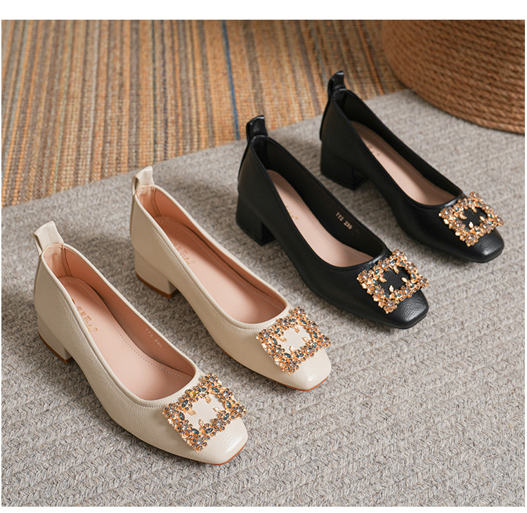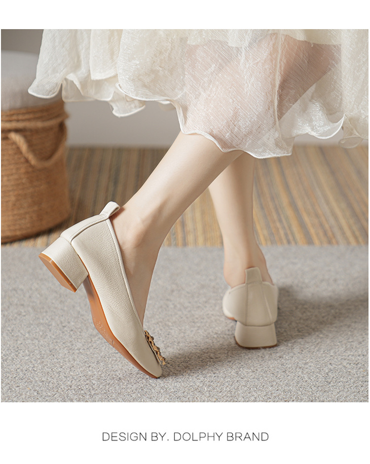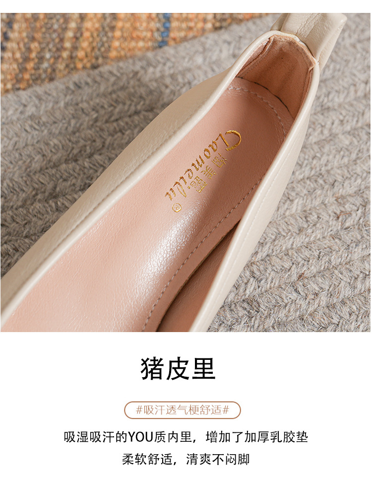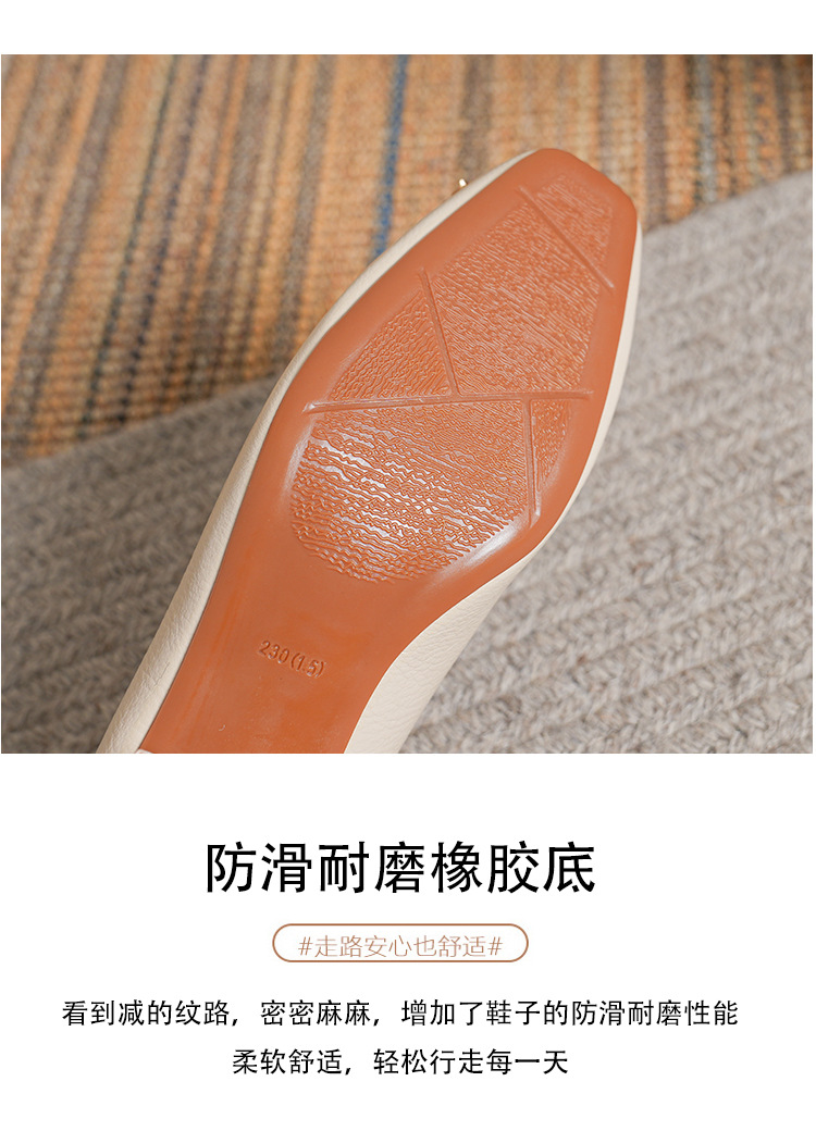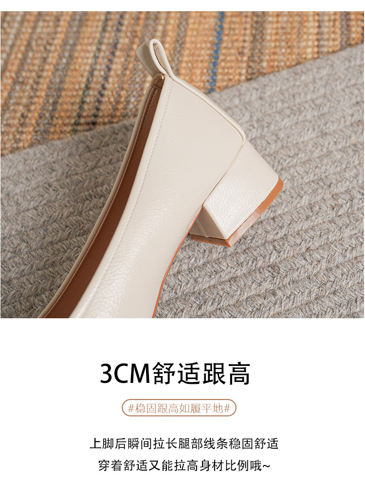 작은 사각 발가락 부드러운 가죽 신발 여성의 가을 2023 안티 킥 간단한 두꺼운 뒤꿈치 부드러운 바닥 편안한 색상 하이힐