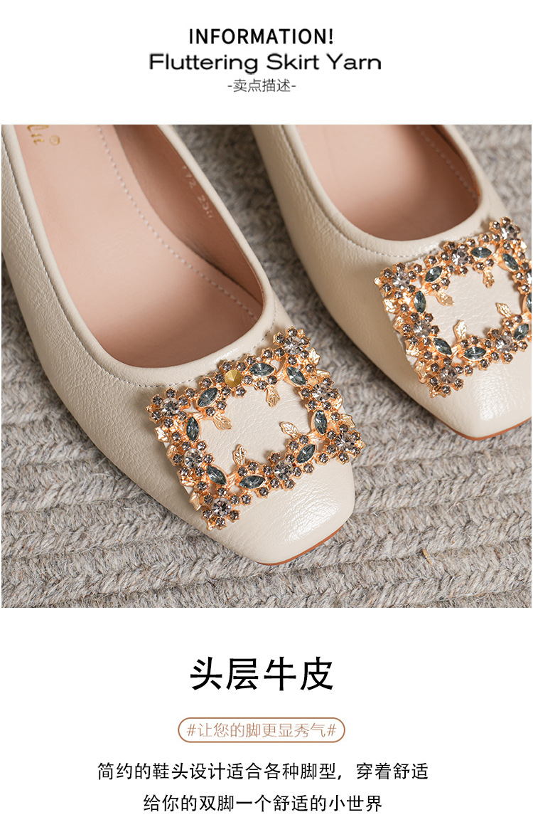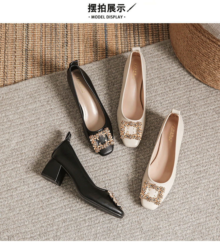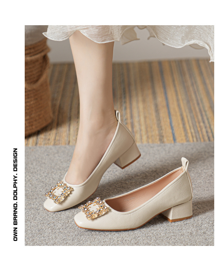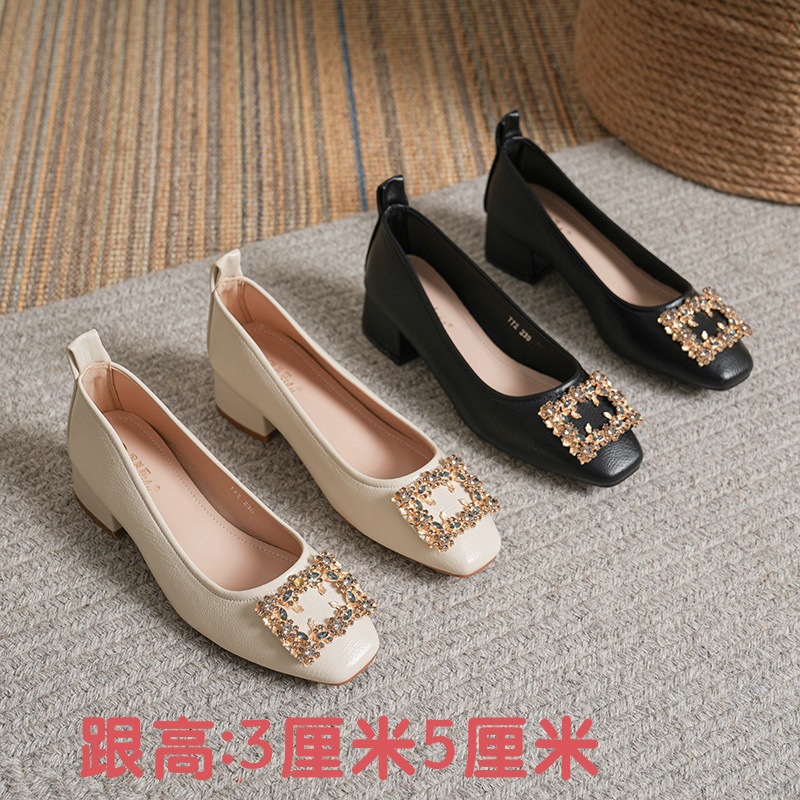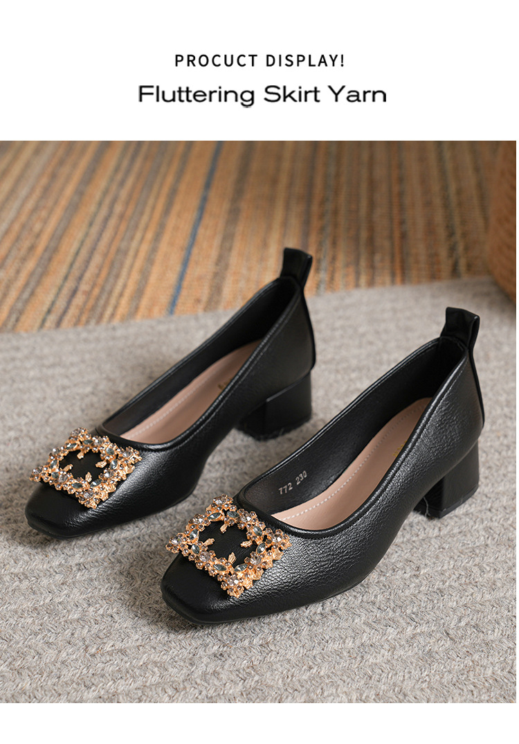 작은 사각 발가락 부드러운 가죽 신발 여성의 가을 2023 안티 킥 간단한 두꺼운 뒤꿈치 부드러운 바닥 편안한 색상 하이힐스토어 가기