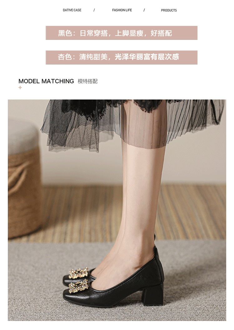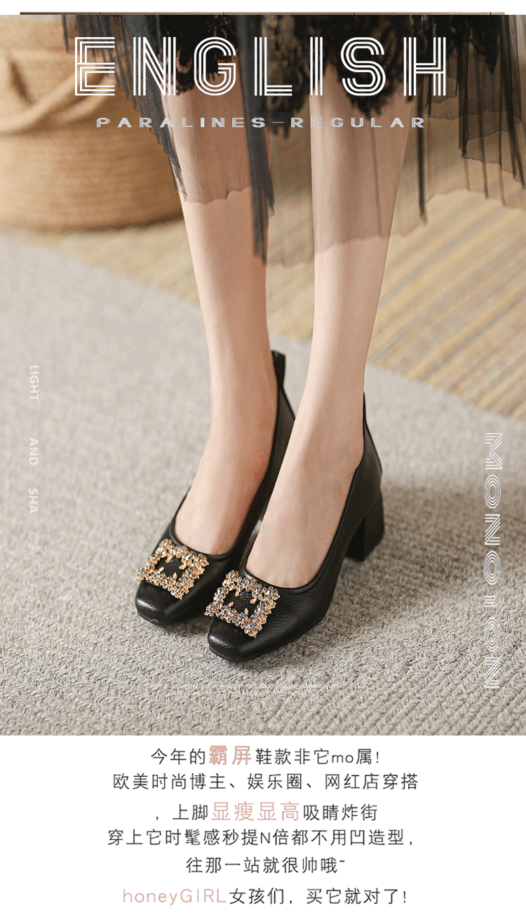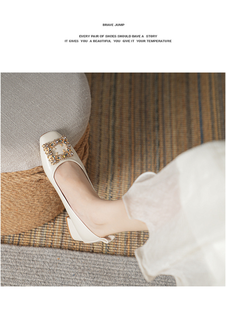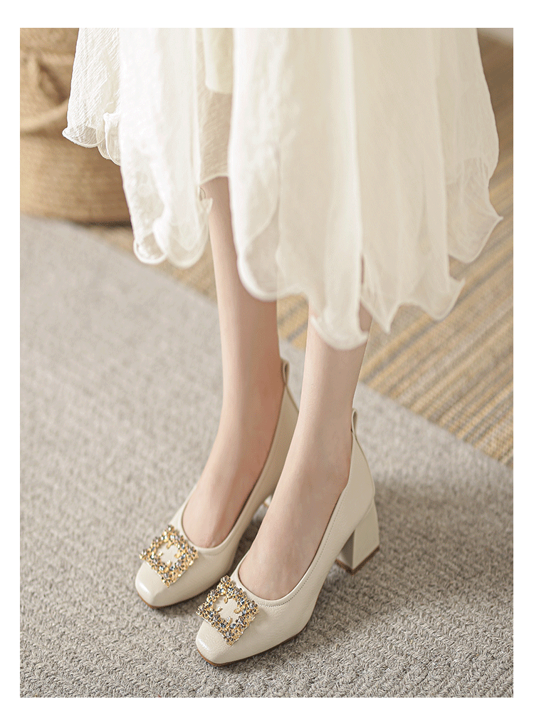 작은 사각 발가락 부드러운 가죽 신발 여성의 가을 2023 안티 킥 간단한 두꺼운 뒤꿈치 부드러운 바닥 편안한 색상 하이힐스토어 가기