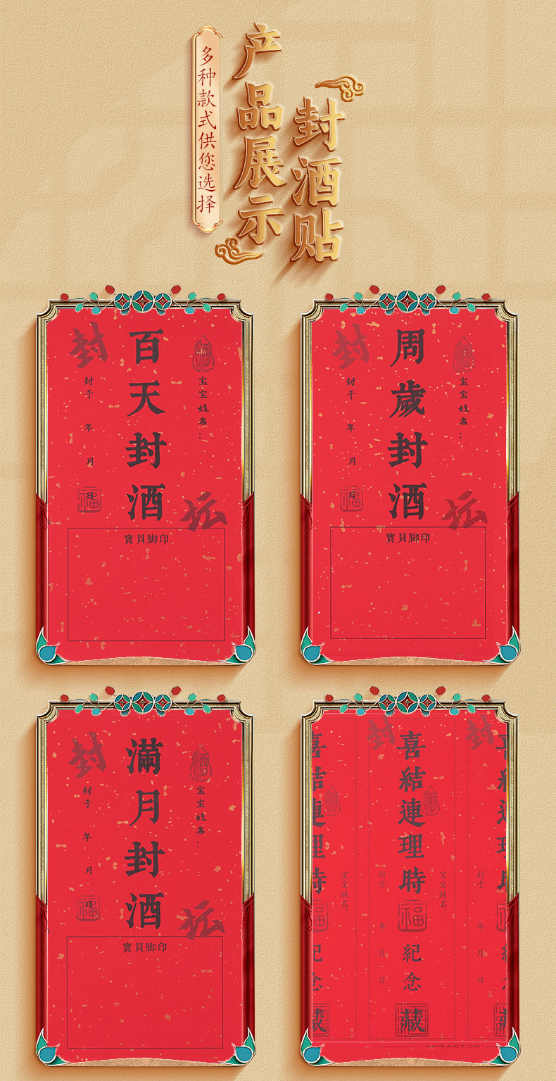 • [백일봉인주-발자국형 스티커 6개/10x20cm] + 펜 + 금인장