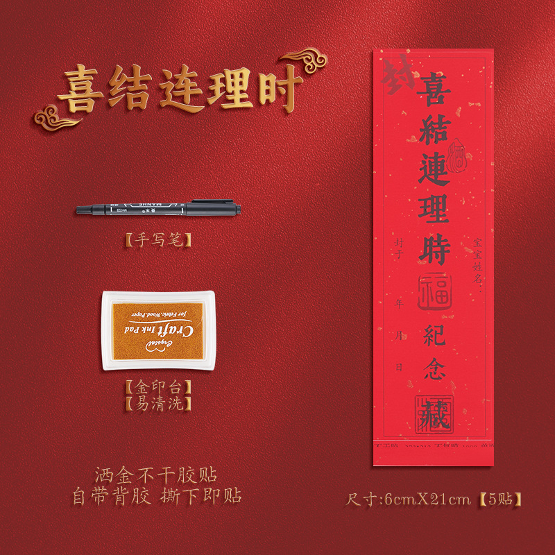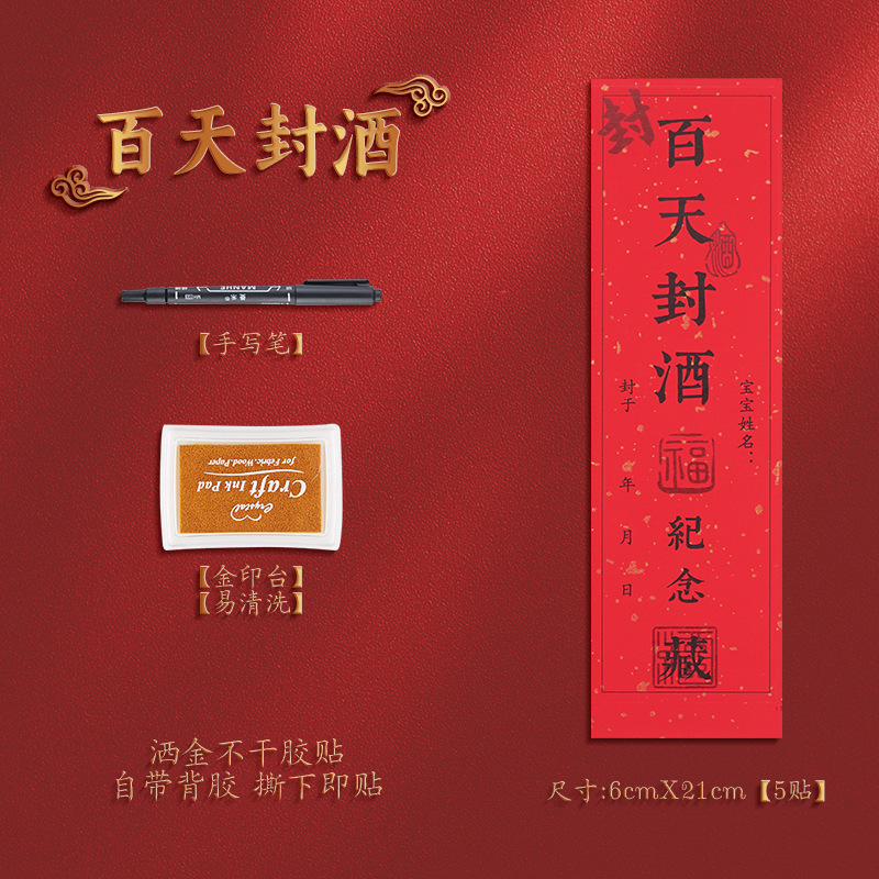 • [백일봉인/스티커 5개/6x21cm] + 펜 + 금인장 + 인장