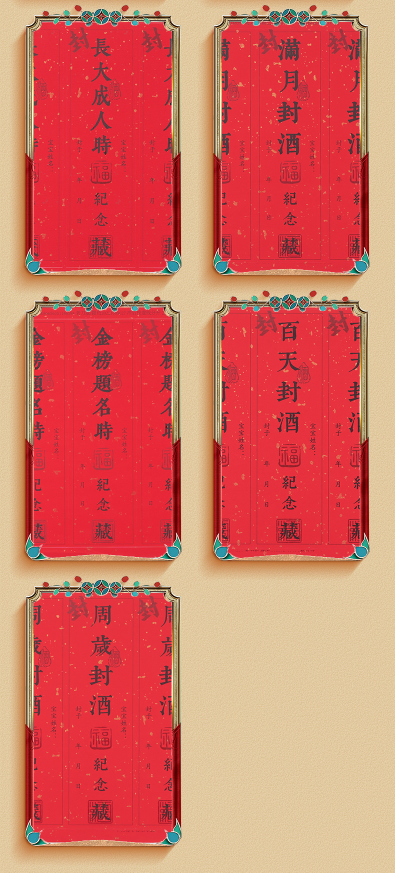 • [백일봉인/스티커 5개/6x21cm] + 펜 + 금인장