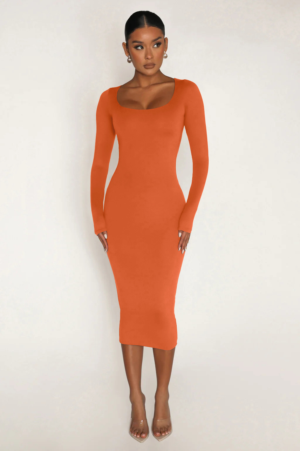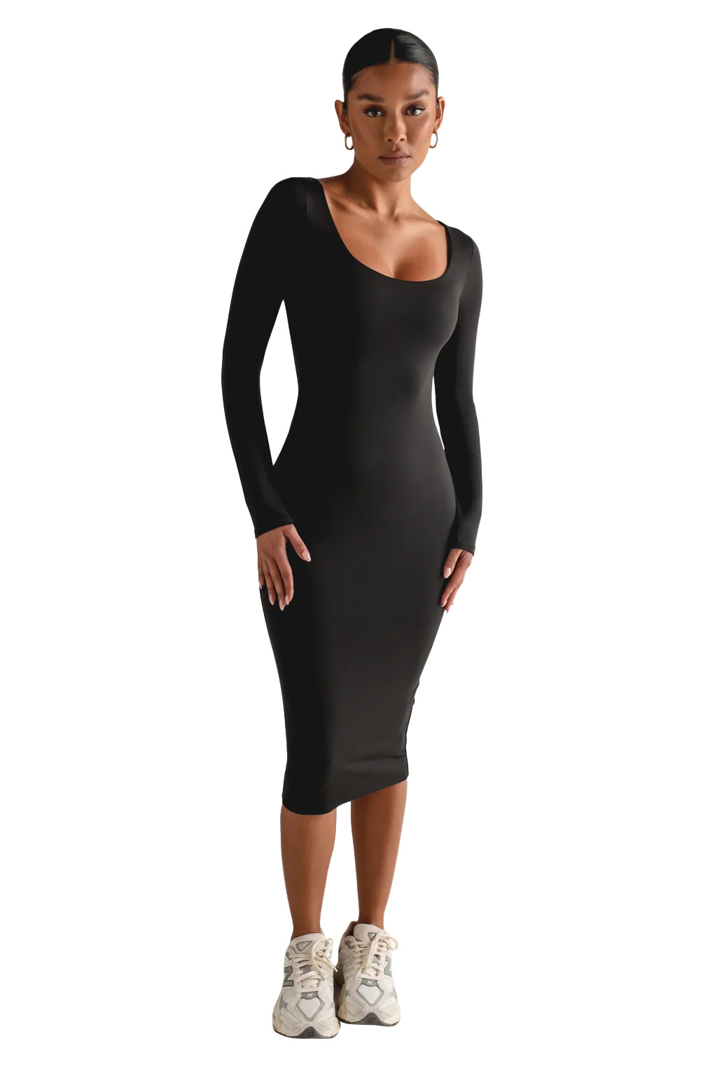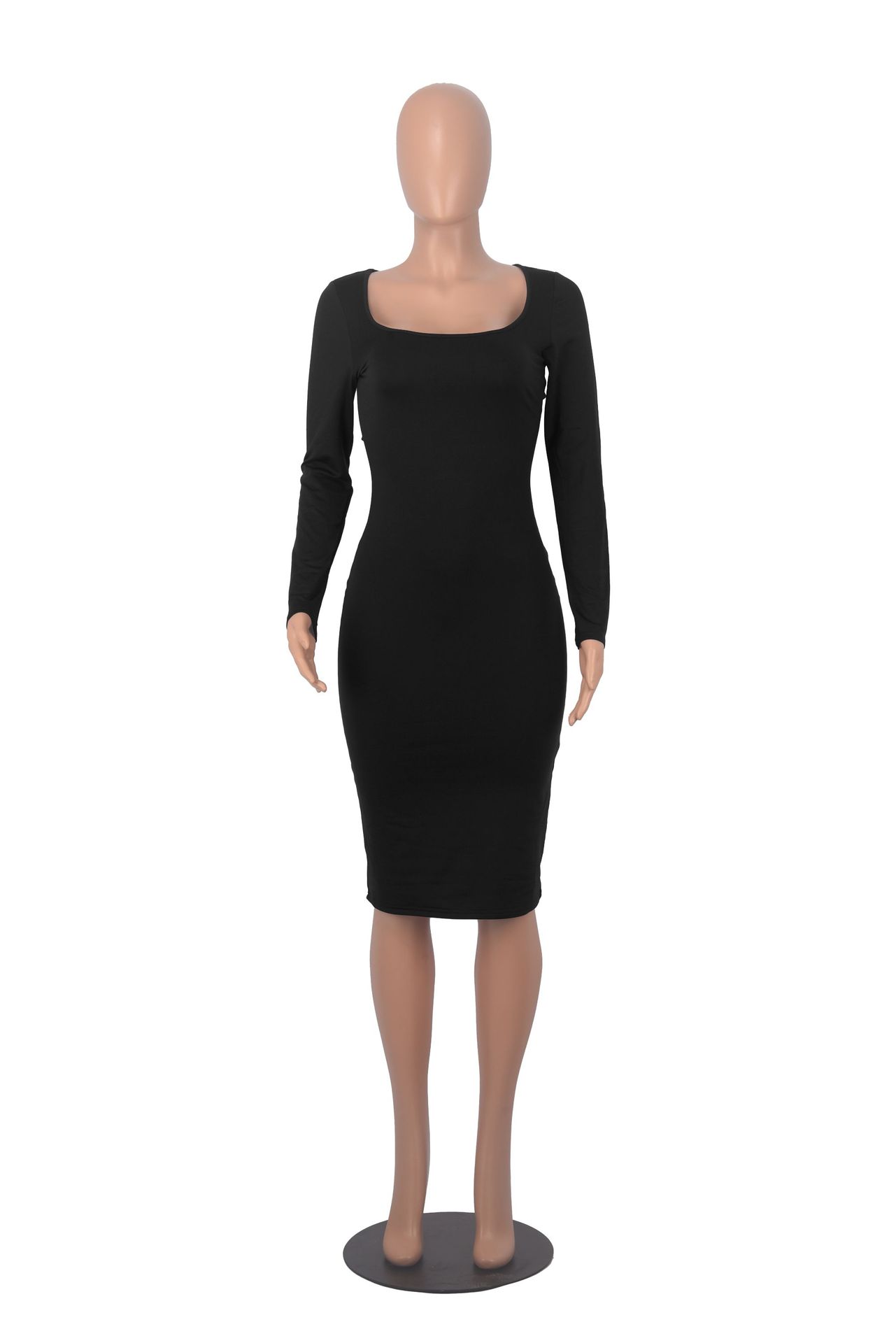 2023 아마존 가을과 겨울 새로운 원피스 섹시한 크루넥 원피스 잡아 두꺼운 슬림 핏 힙 스커트