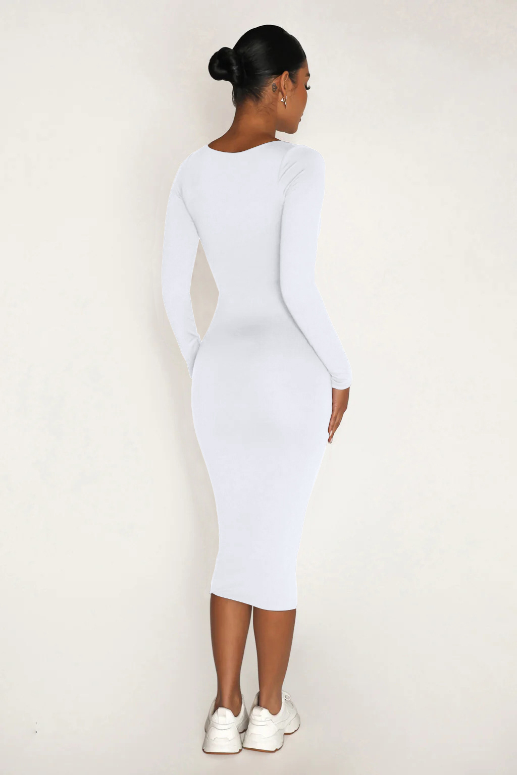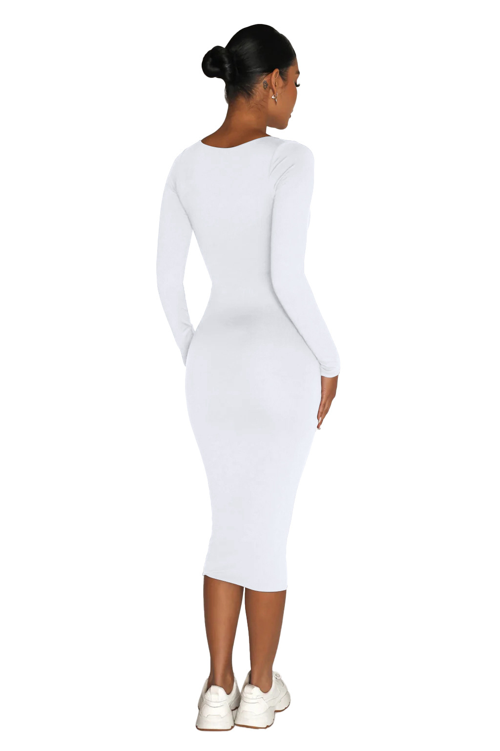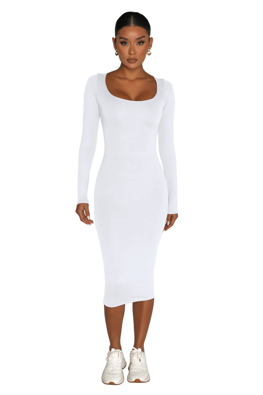 2023 아마존 가을과 겨울 새로운 원피스 섹시한 크루넥 원피스 잡아 두꺼운 슬림 핏 힙 스커트