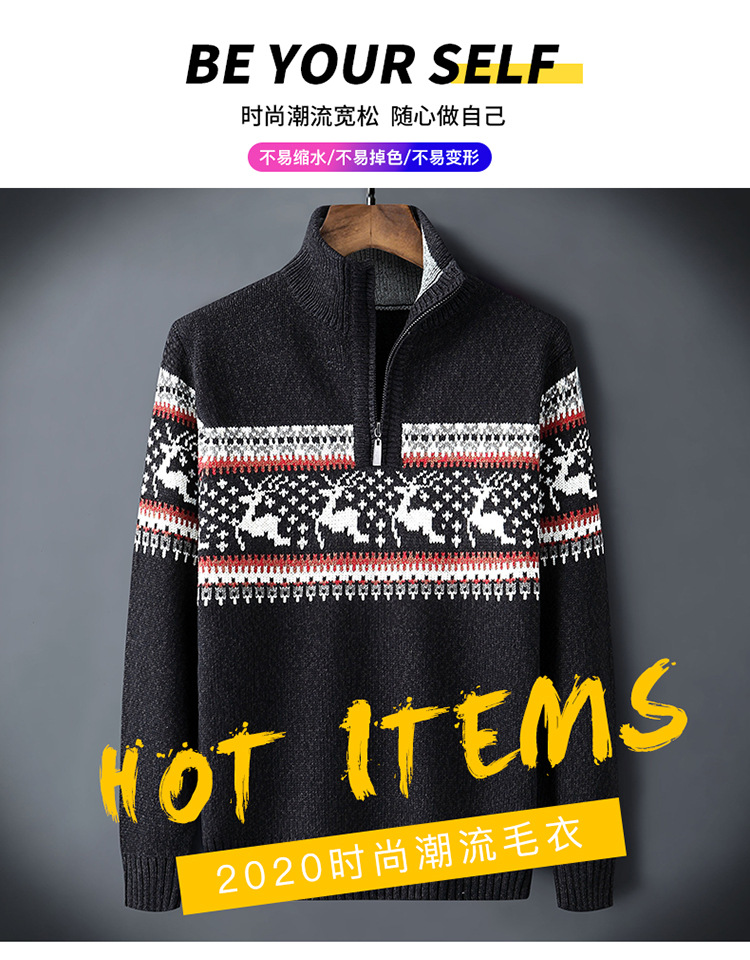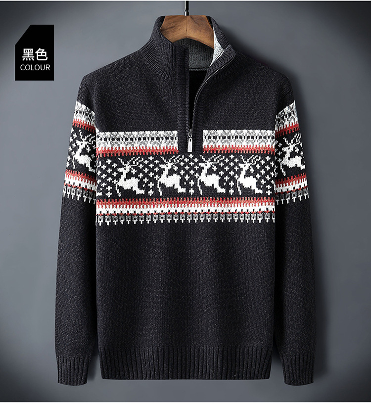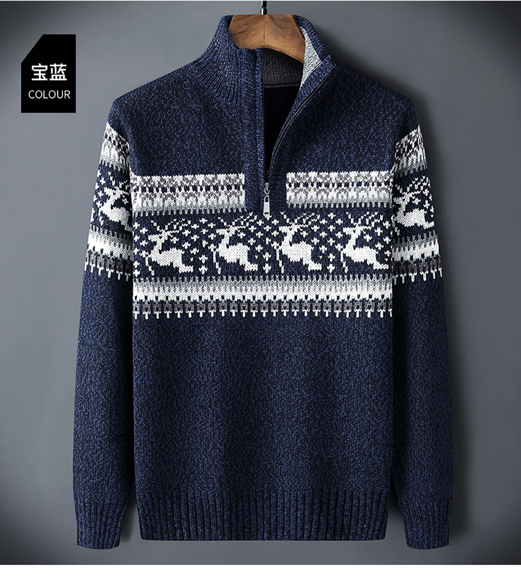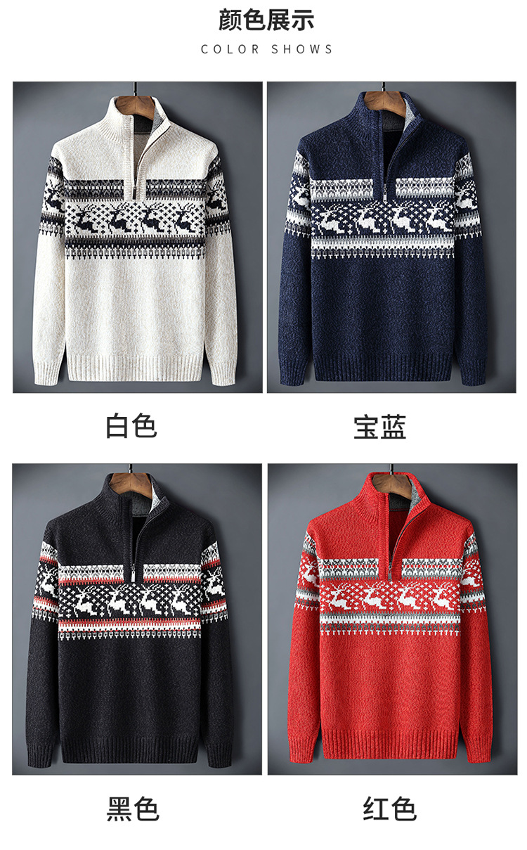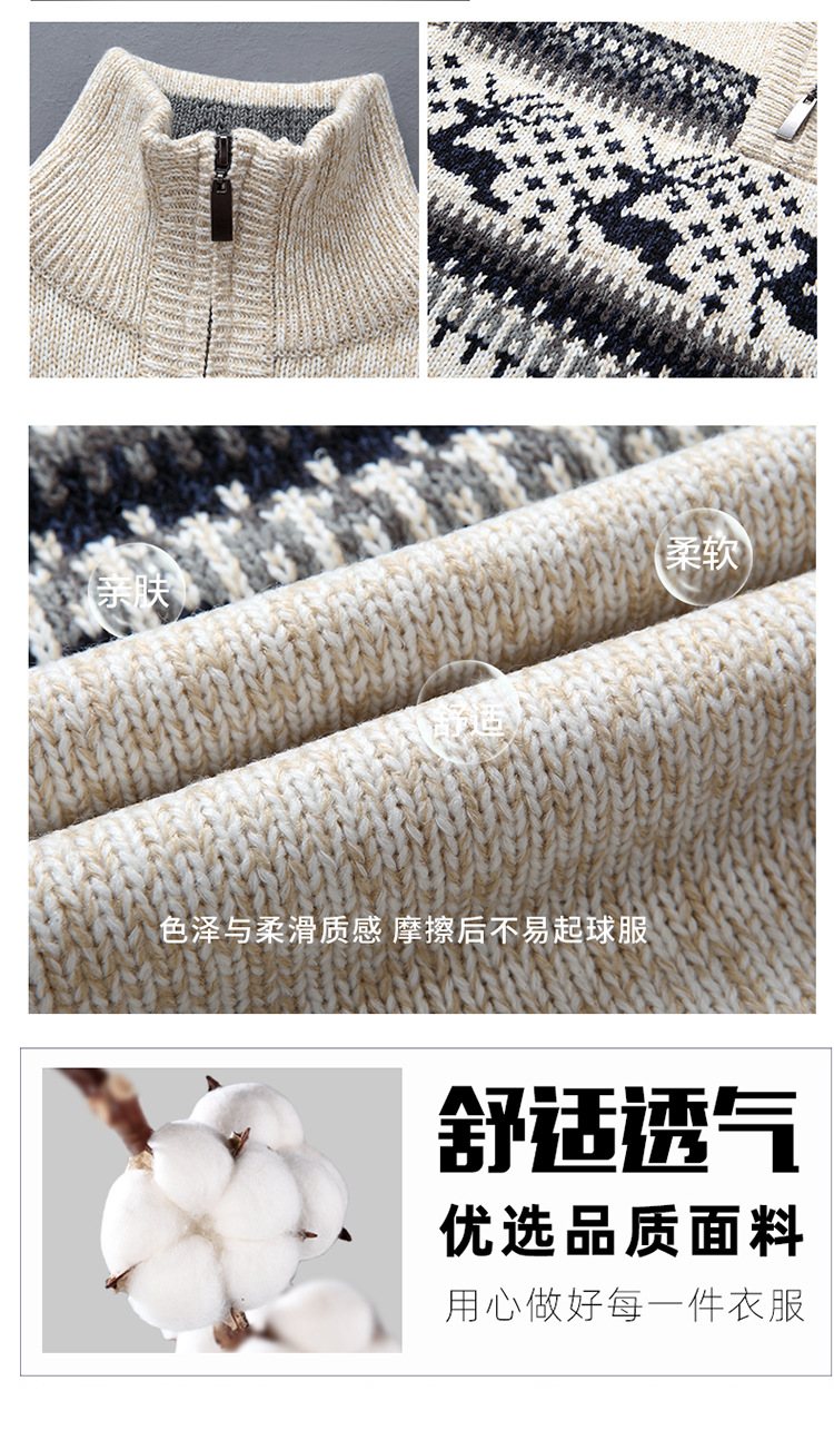 크로스보더 아빠옷 가을 겨울 남성복 신상 스탠드 칼라 반지퍼 스웨터 패션 청년용 플리스 니트 재킷 남성용스토어 가기
