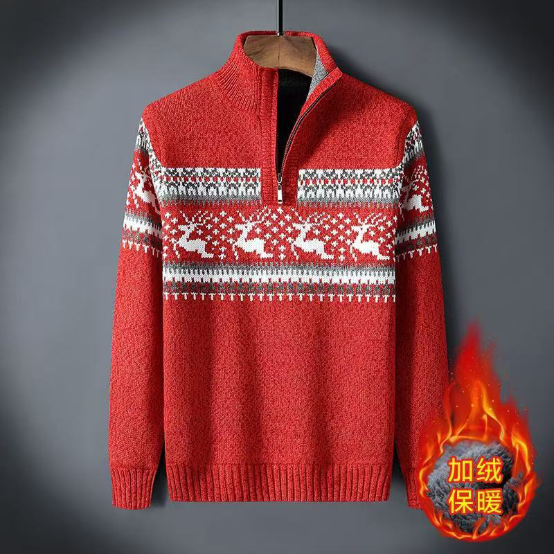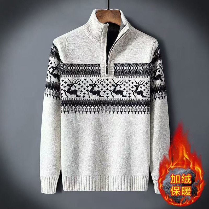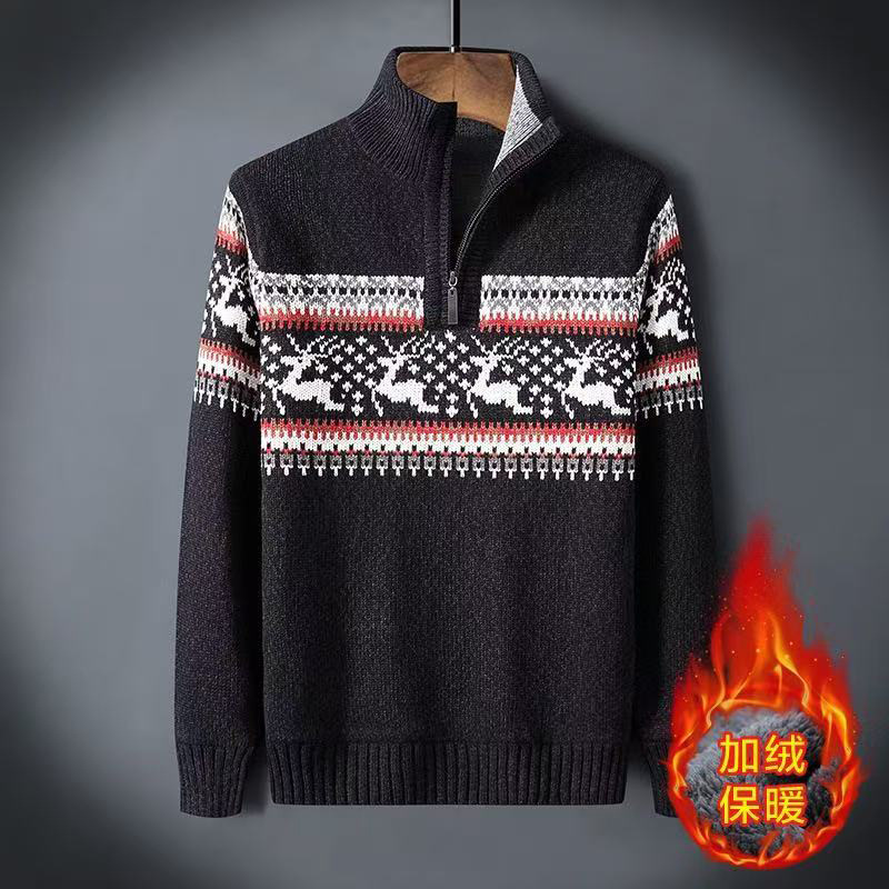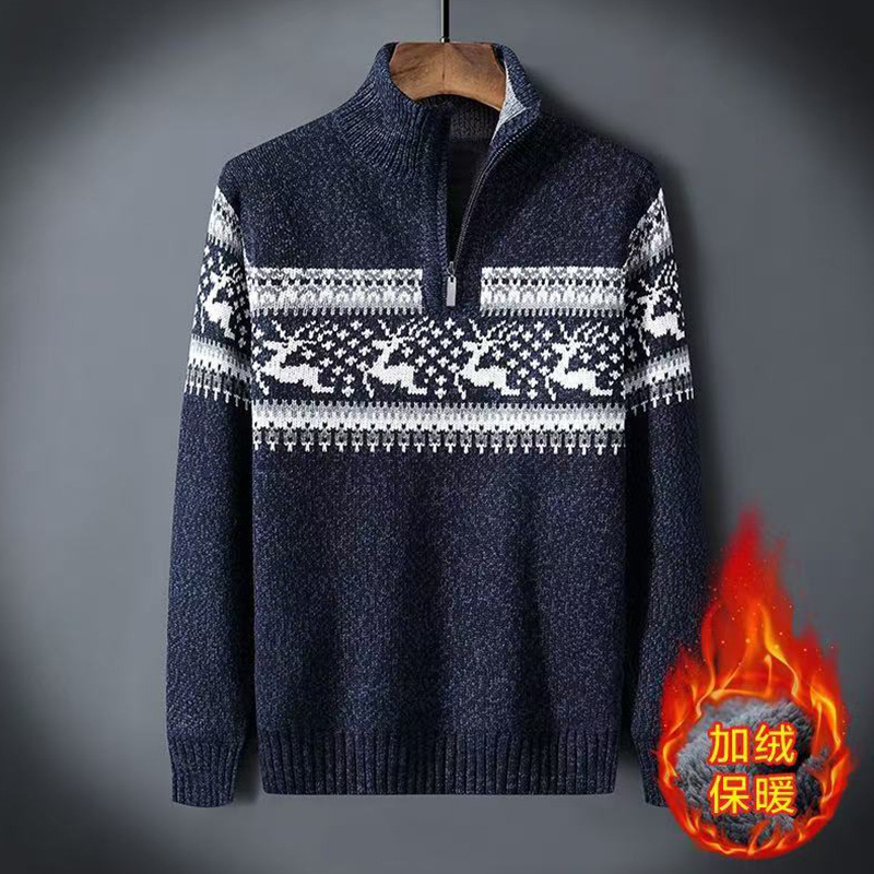 크로스보더 아빠옷 가을 겨울 남성복 신상 스탠드 칼라 반지퍼 스웨터 패션 청년용 플리스 니트 재킷 남성용