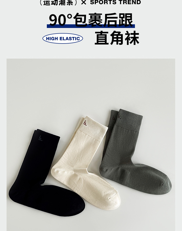 수시나이민 남성 양말 봄 가을 땀 흡수 단색 직각 90도 뒤꿈치 비즈니스 양말 검정 중간 길이 면 양말스토어 가기