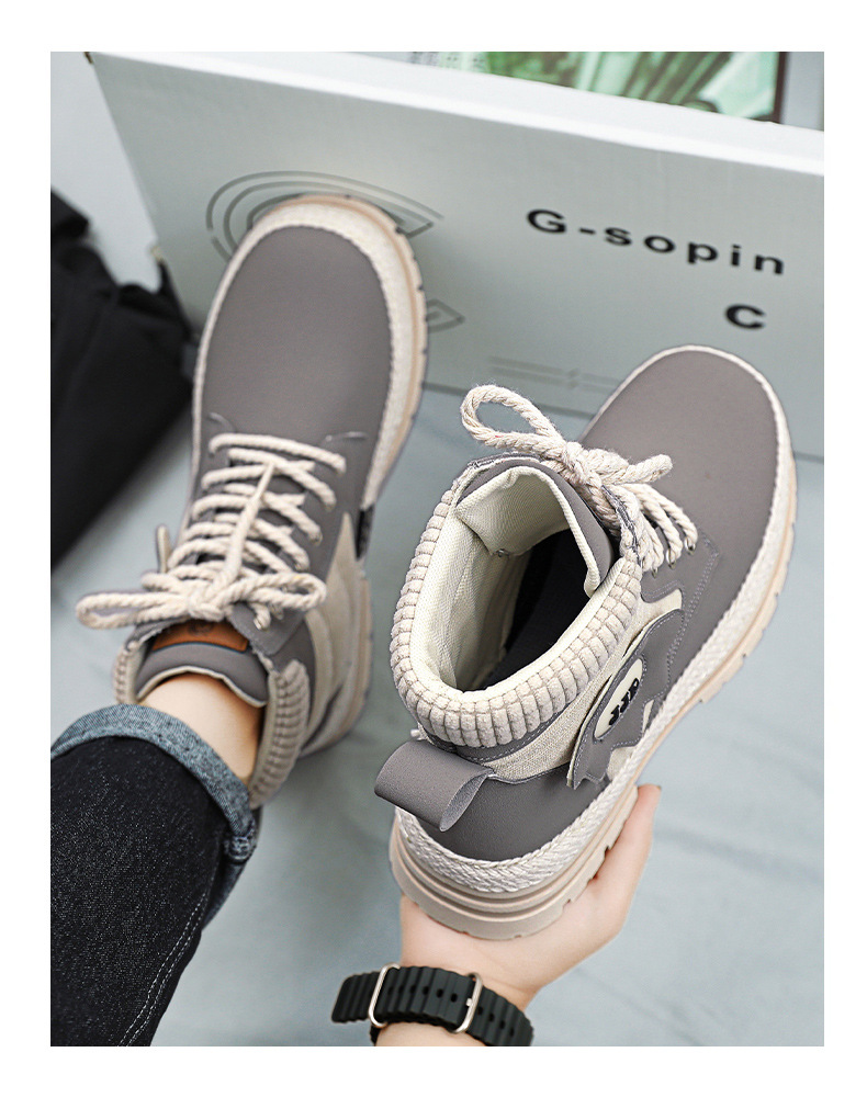마틴 부츠 남성 가을 2023 새로운 미드 하이 탑 영국 툴링 남성 신발 증가 두꺼운 바닥 밀짚 바닥 방수 남성 신발스토어 가기