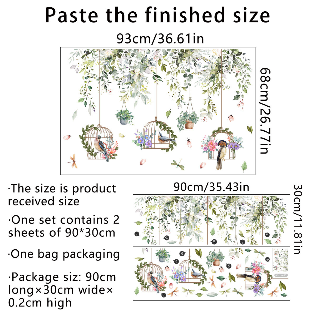 MS2133-KQ 식물 덩굴 새 케이지 이동식 벽 스티커 침실 거실 장식 벽 스티커 자체 접착 벽