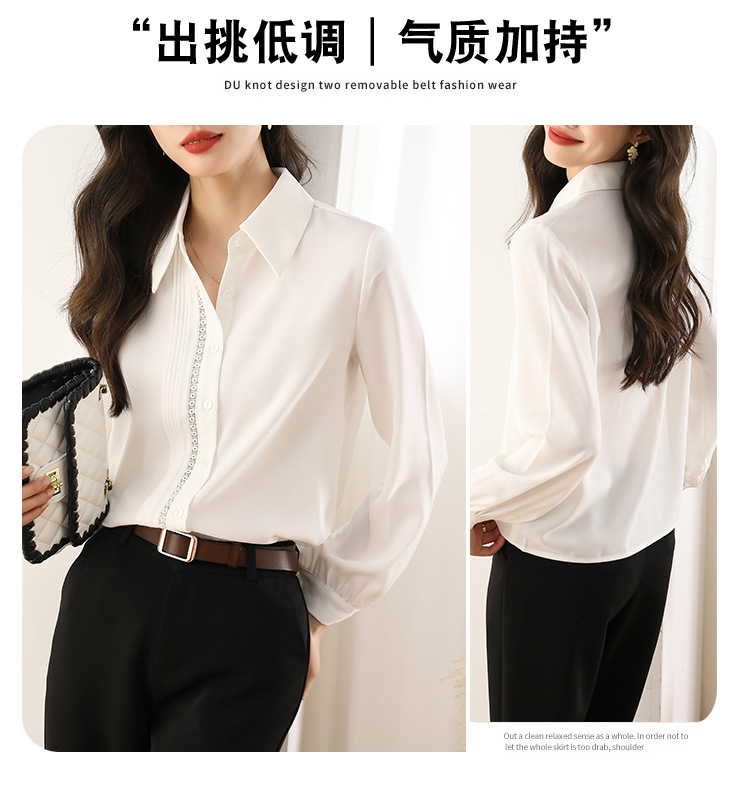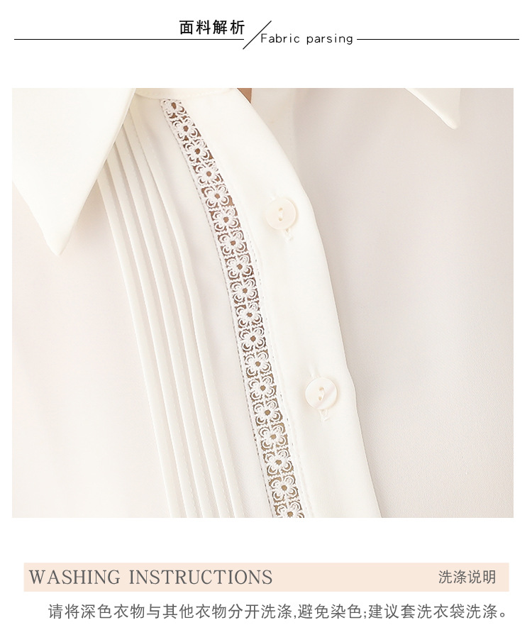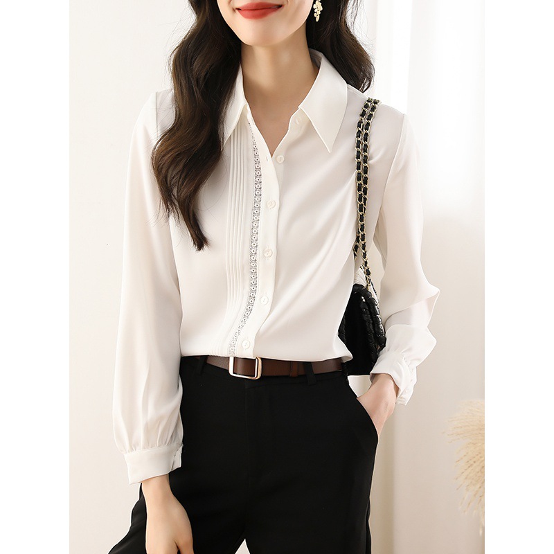 리얼 샷 2023 가을 새로운 옷깃 스트레이트 튜브 긴 소매 리본 레이스 스티칭 셔츠 여성 자켓 쉬폰 셔츠스토어 가기