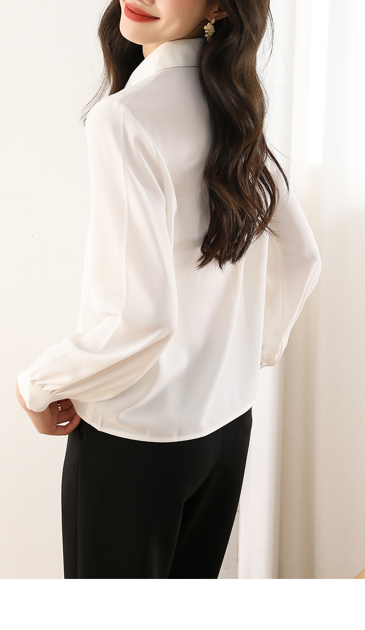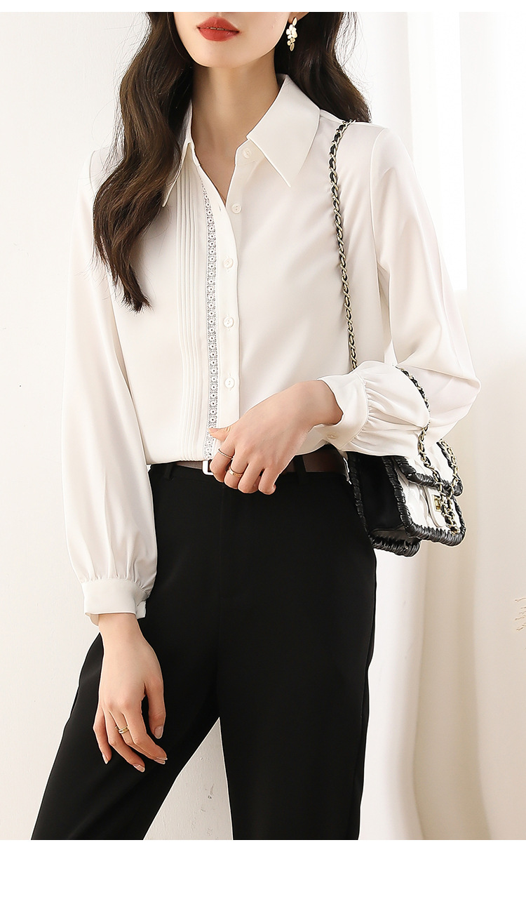 리얼 샷 2023 가을 새로운 옷깃 스트레이트 튜브 긴 소매 리본 레이스 스티칭 셔츠 여성 자켓 쉬폰 셔츠