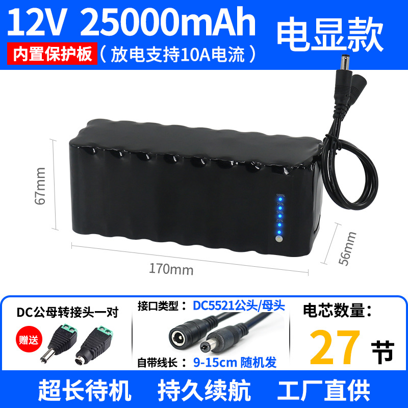 12v 리튬 배터리 대용량 오디오 모니터링 광고 라이트 박스 Led 라이트 스트립 리튬 배터리 팩 12 볼트 야외 사용
