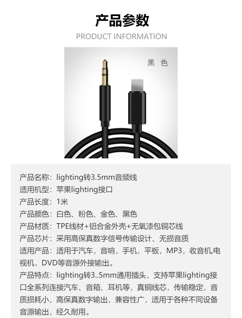 3.5mm 자동차 오디오 데이터 케이블 어댑터 케이블에 애플 조명 오디오 AUX 오디오 케이블에 적용 가능