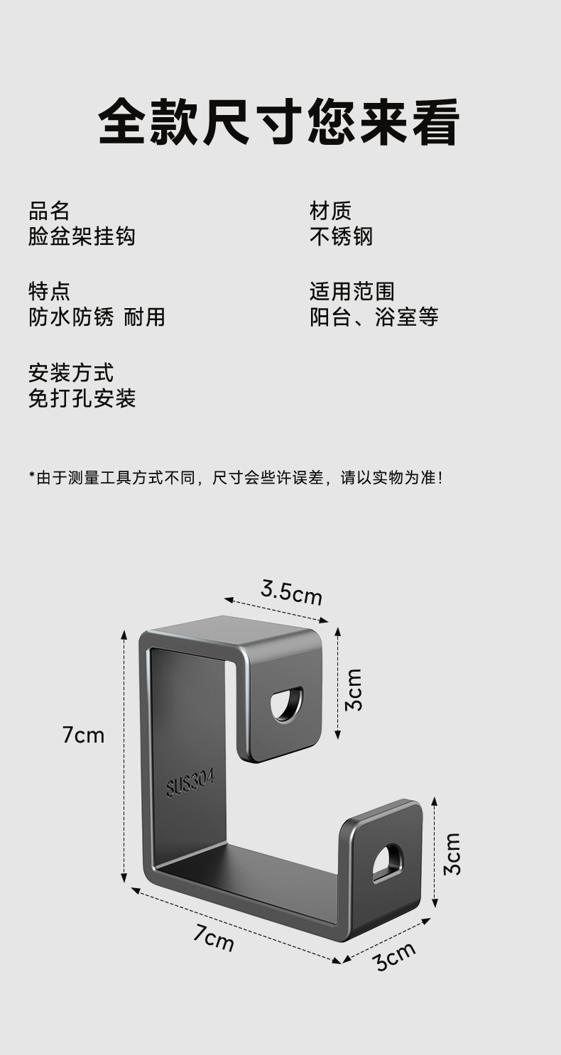 304 스테인레스 스틸 세면대 후크 펀치 프리 세면기 보관 랙 욕실 교수형 세면대 욕실 벽걸이 랙