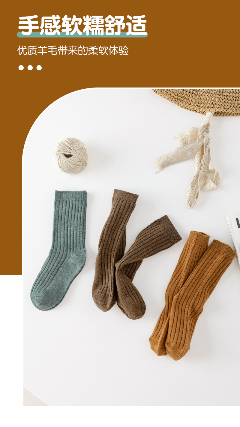 어린이 양말 가을과 겨울 2023 단색 이중 바늘 양모 양말 소년과 소녀 두꺼운 튜브 따뜻한 양말의 새로운 한국어 버전스토어 가기
