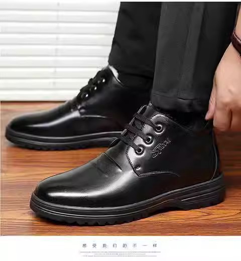 겨울 기모 두꺼운 남성용 면 가죽 신발 두꺼운 단독 미끄럼 방지 남성 캐주얼 하이탑 따뜻한 면 신발 중년 및 노인 아빠 신발스토어 가기