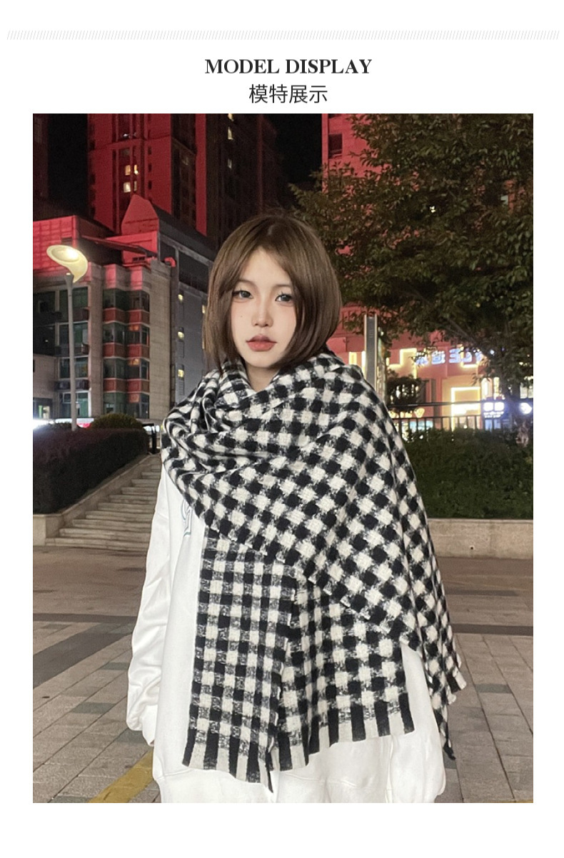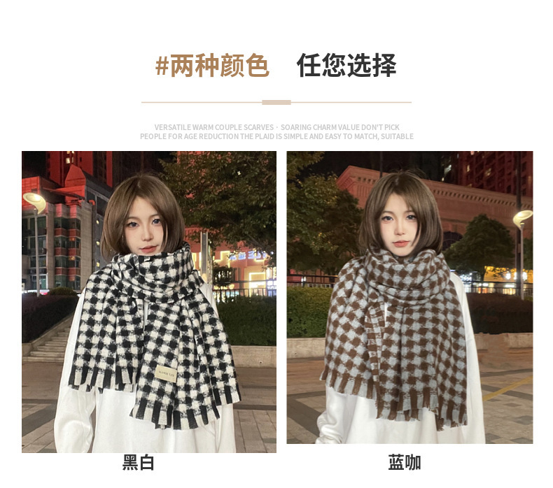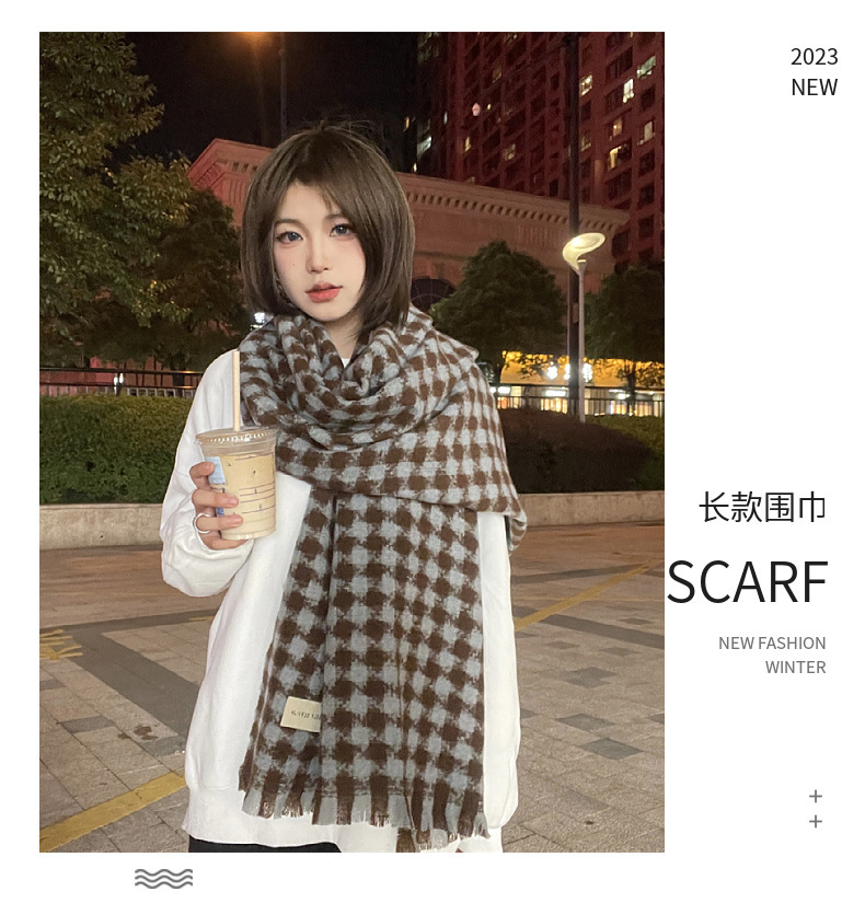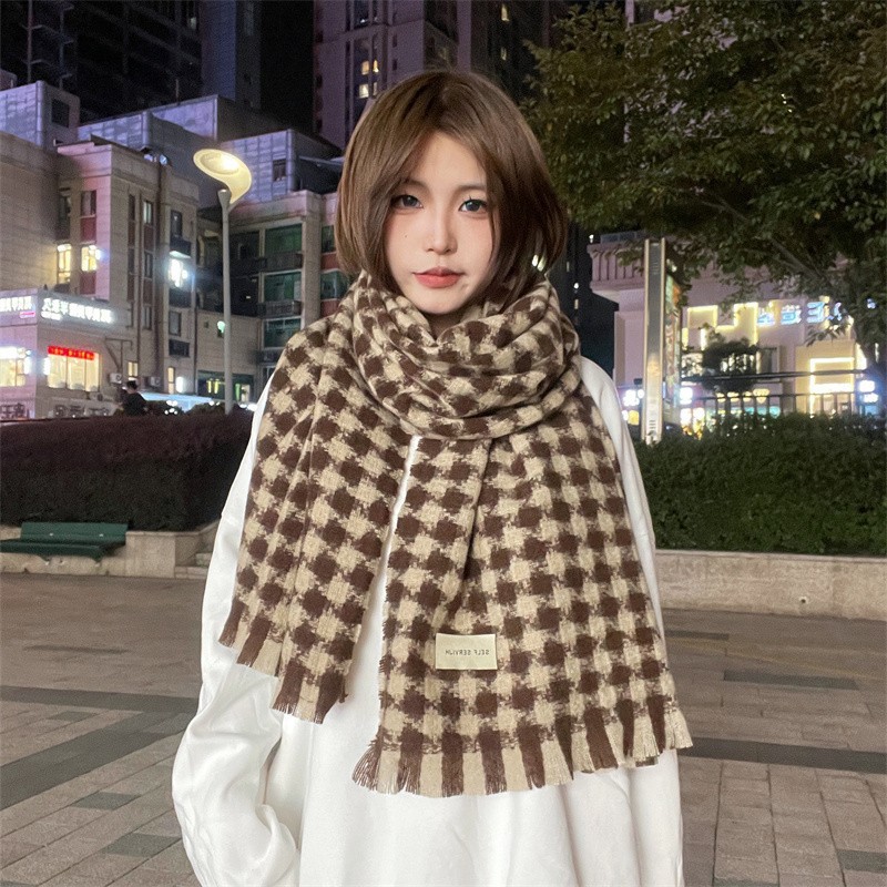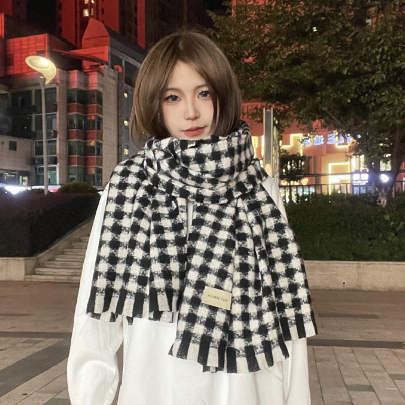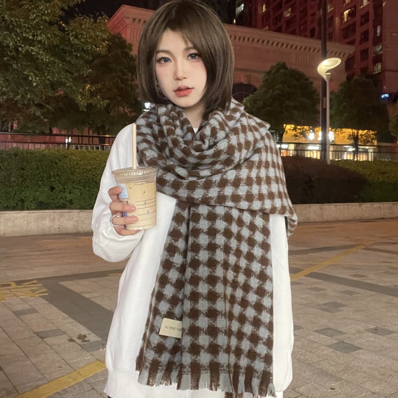 달콤한 스타일의 새로운 패션 한국 짠 캐시미어 스카프 겨울 따뜻한 한국 사각형 격자 무늬 긴 수건스토어 가기