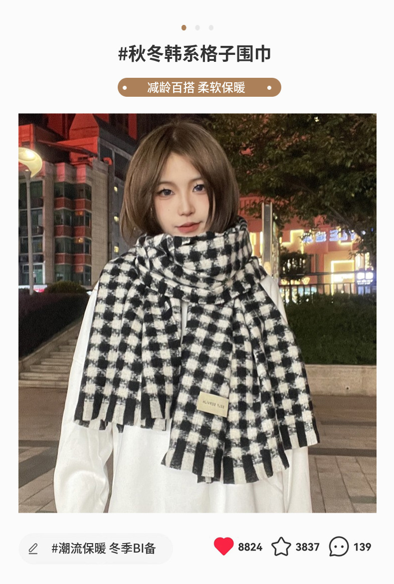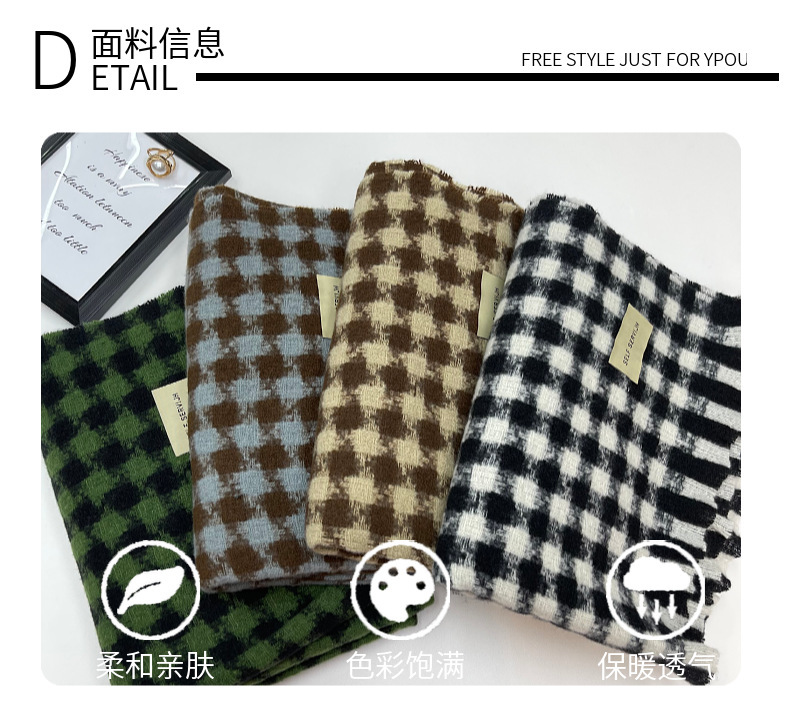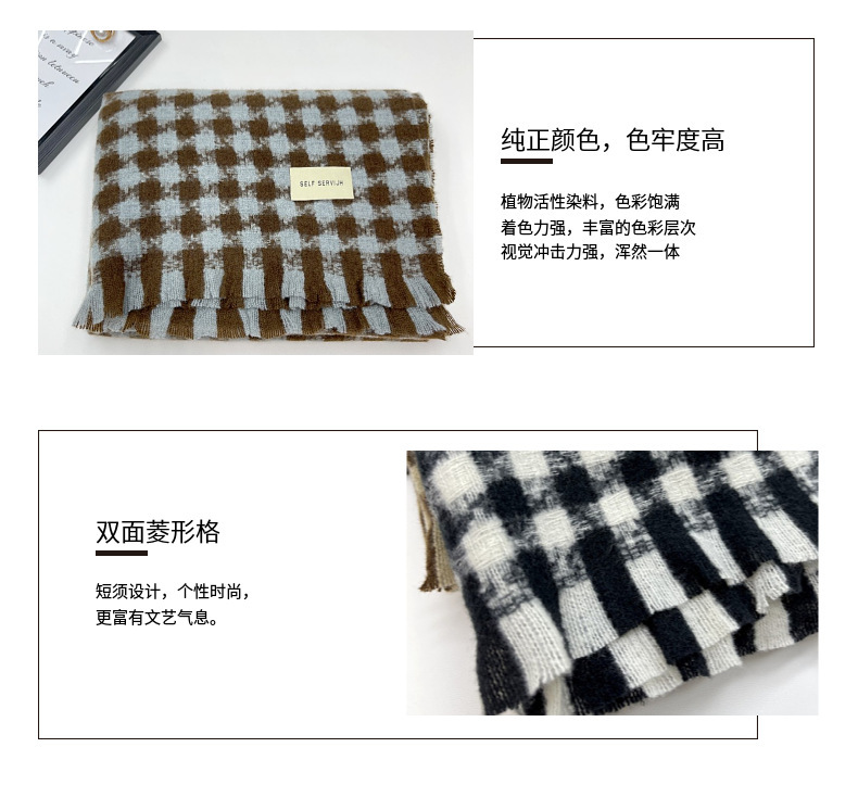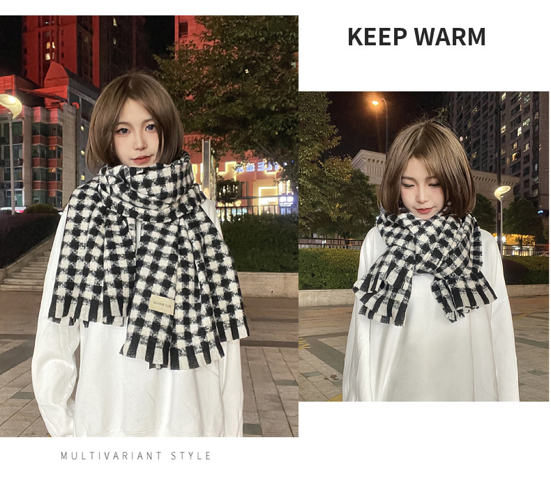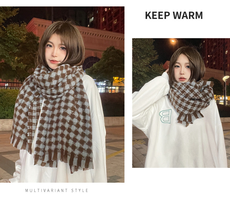 달콤한 스타일의 새로운 패션 한국 짠 캐시미어 스카프 겨울 따뜻한 한국 사각형 격자 무늬 긴 수건스토어 가기