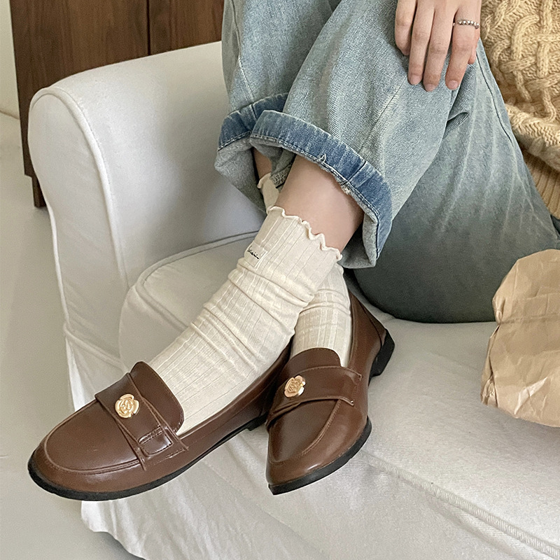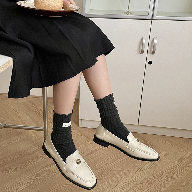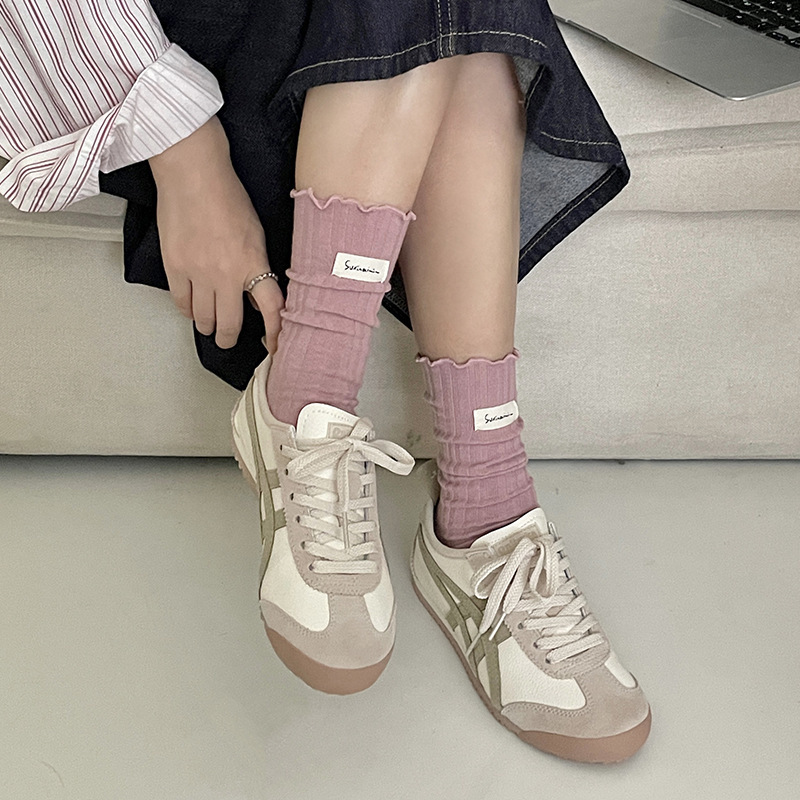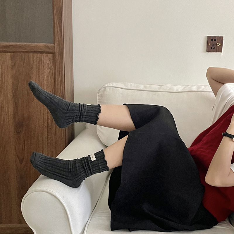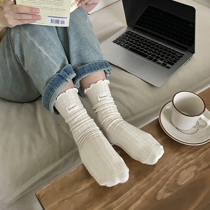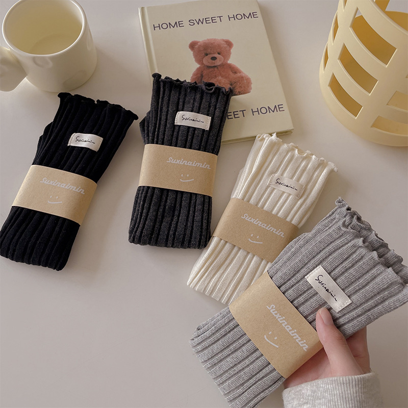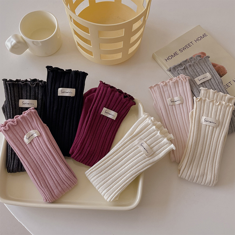 빈티지 예술적 스타일 우드 이어 사이드 양말 여성용 한국식 솔리드 컬러 모든 매치 걸리 스타일 천 라벨 달콤한 핑크 더미 양말스토어 가기