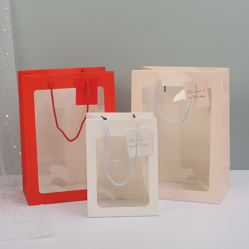타나바타 발렌타인 데이 선물 가방 꽃 휴대용 투명 창 선물 가방 꽃 인형 꽃다발 포장 선물 가방스토어 가기